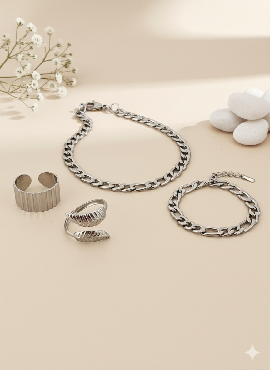 Cada pieza está fabricada en acero inoxidable de alta calidad, reconocido por su resistencia, durabilidad y brillo permanente.