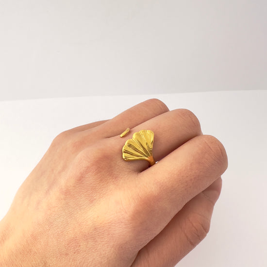 Este anillo abierto está inspirado en las formas orgánicas que nos conectan con lo esencial: para algunos, recuerda la hoja del árbol Ginkgo, símbolo de resiliencia y armonía; para otros, una delicada aleta marina que evoca libertad, fluidez y feminidad. Su acabado mate y su diseño envolvente lo convierten en una joya única y versátil.