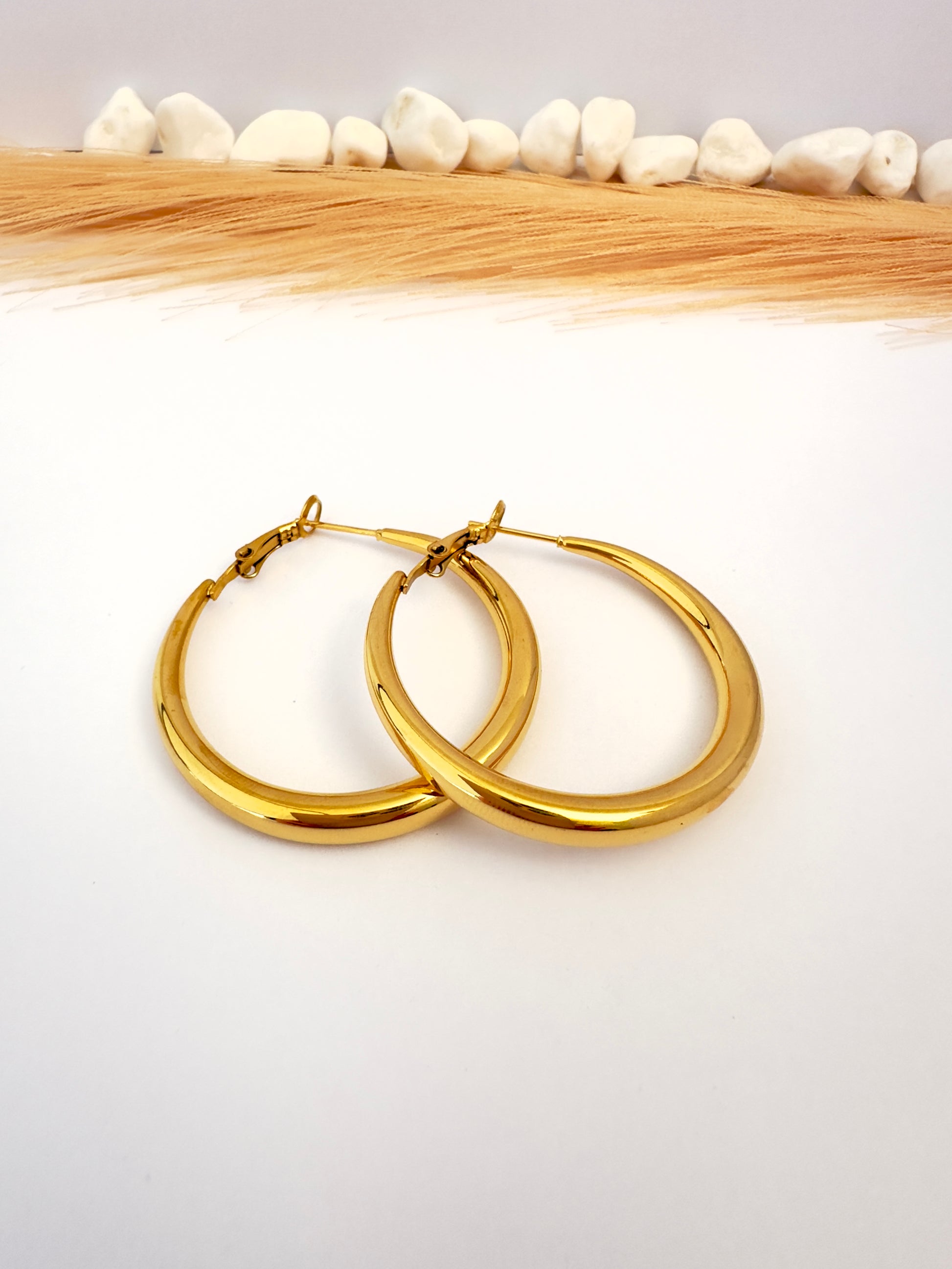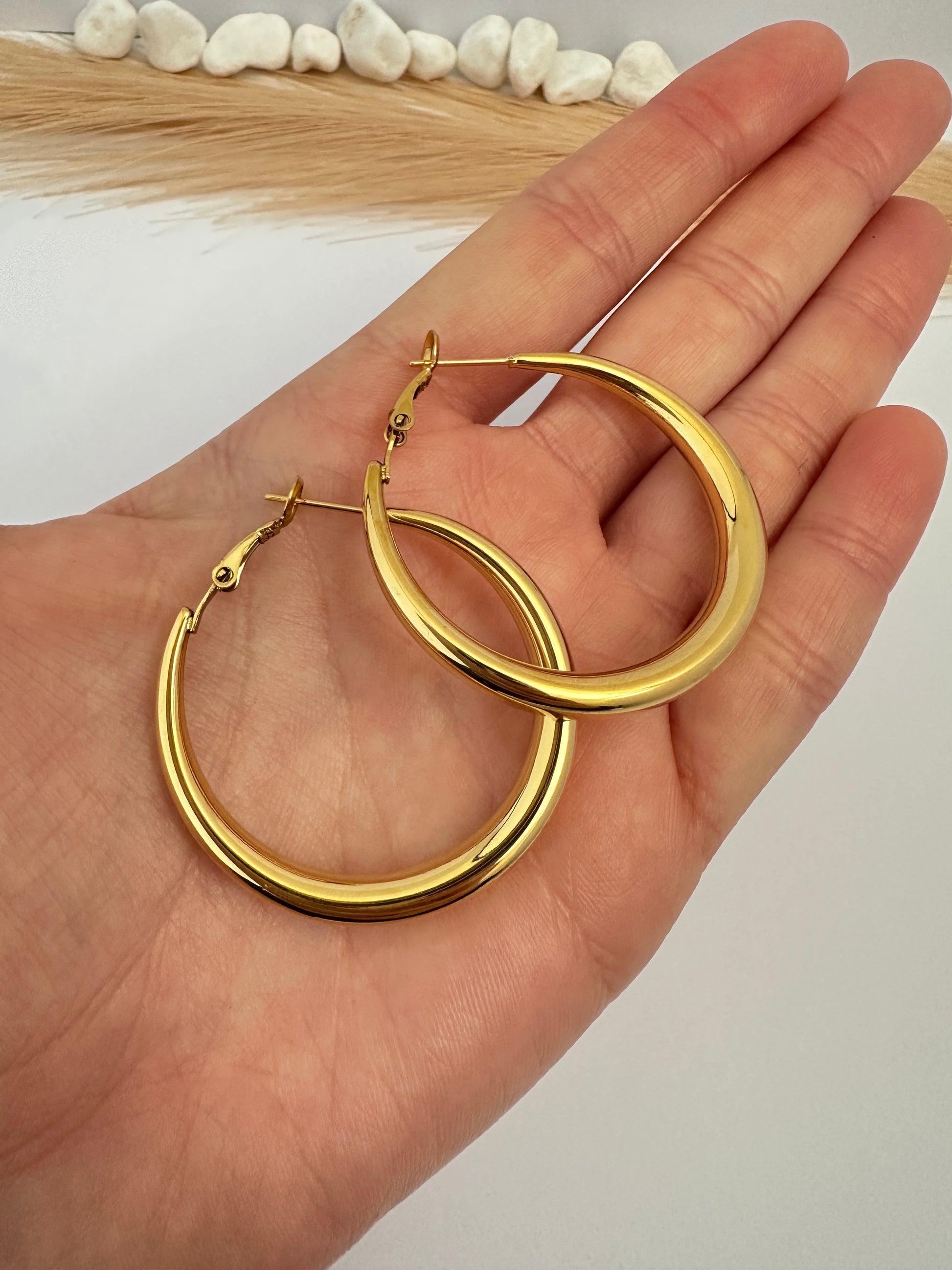 El básico que nunca falla. Estas argollas de acabado pulido y brillante son un must en cualquier colección de joyas. Su diseño limpio, moderno y versátil las convierte en el complemento ideal para looks casuales o más formales. Atemporales, livianas y cómodas de usar todo el día.