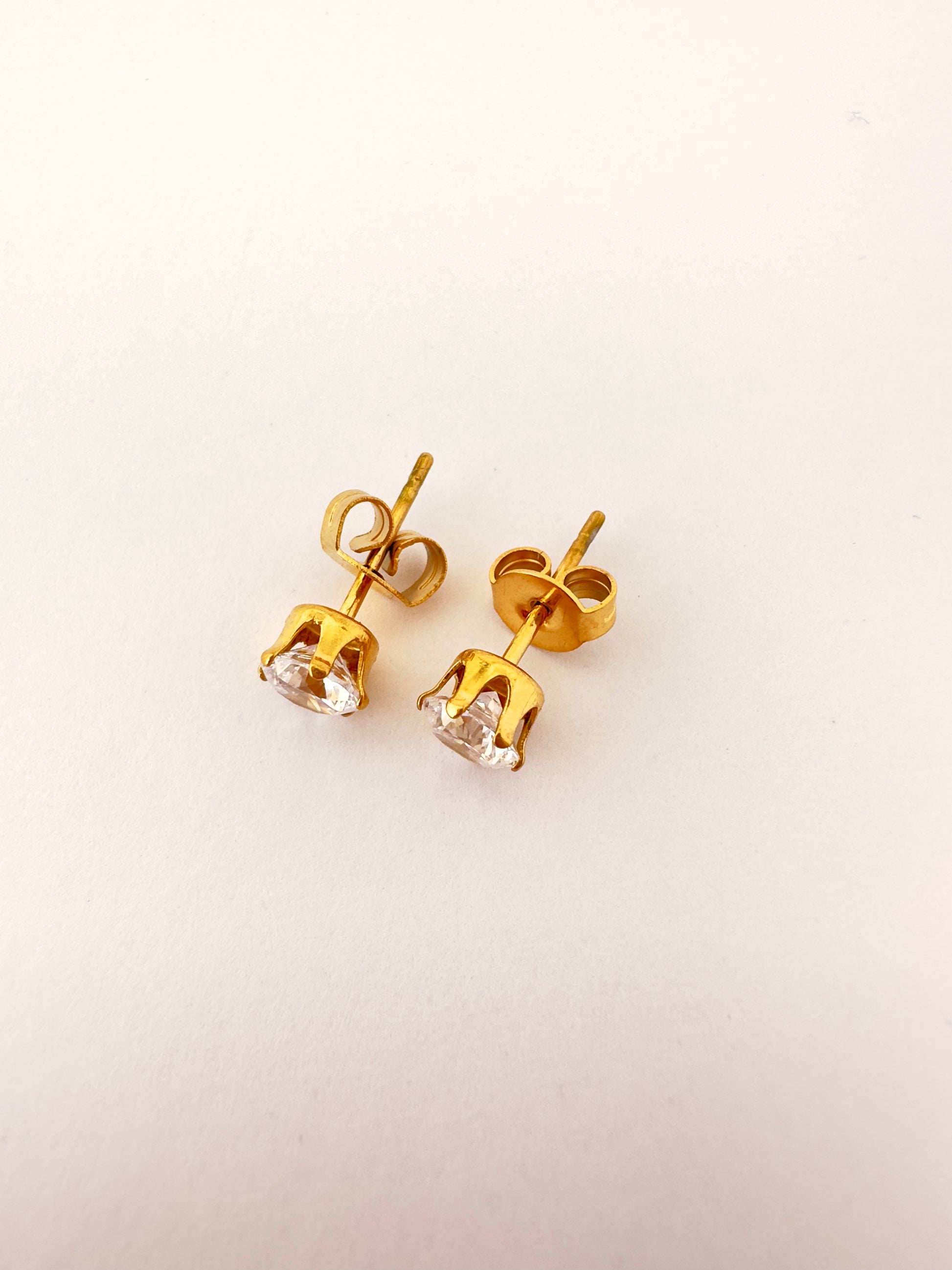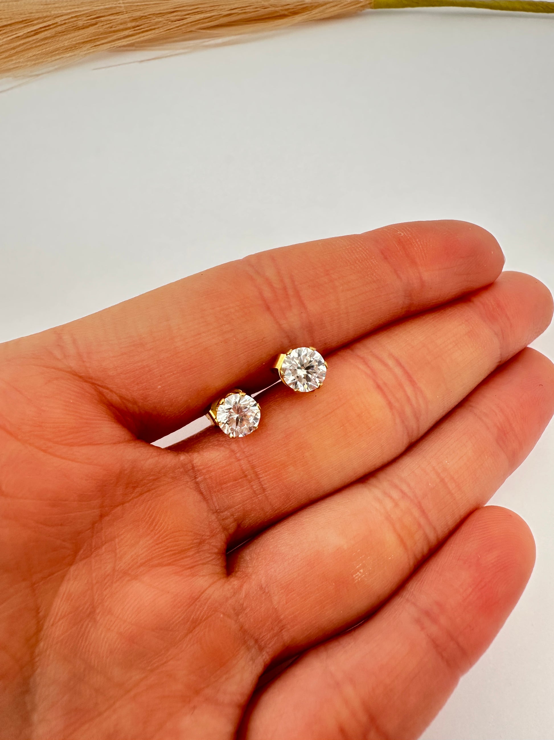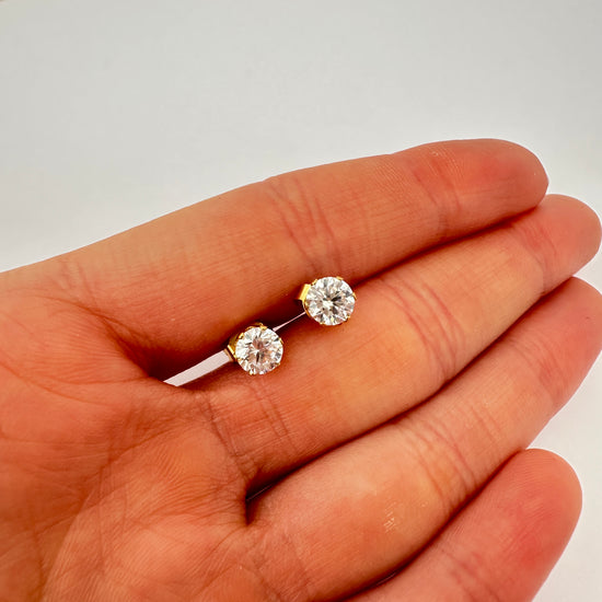 Un diseño esencial que nunca pasa de moda. Estos aros tipo solitario con circonita blanca en corte redondo y montura abierta realzan el brillo natural de la piedra, convirtiéndolos en un básico infaltable para el día a día o para complementar looks más elegantes.
