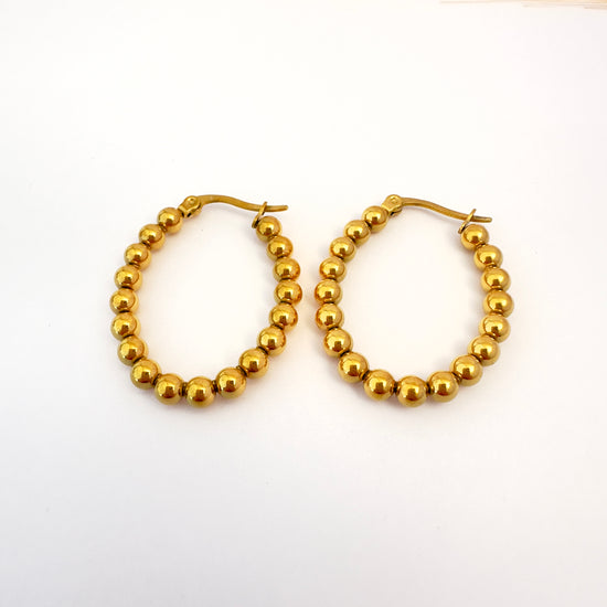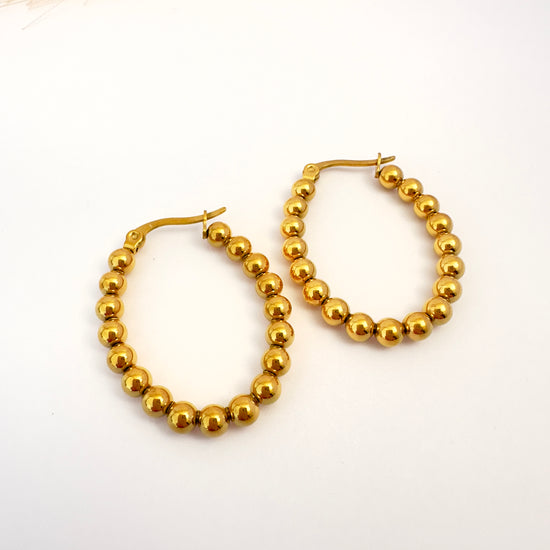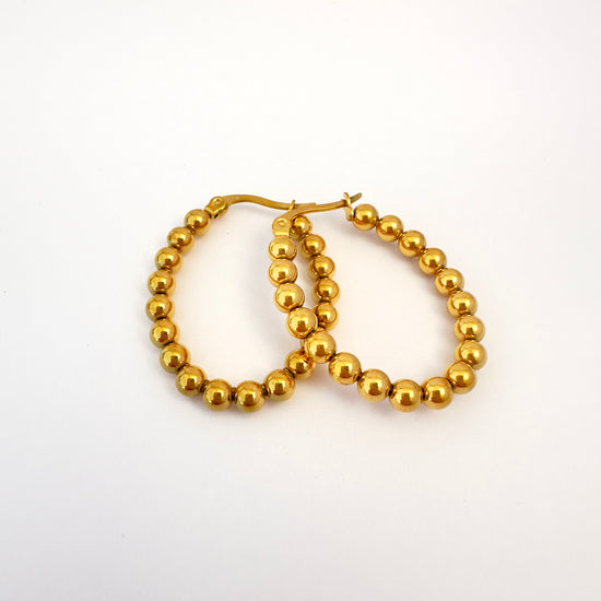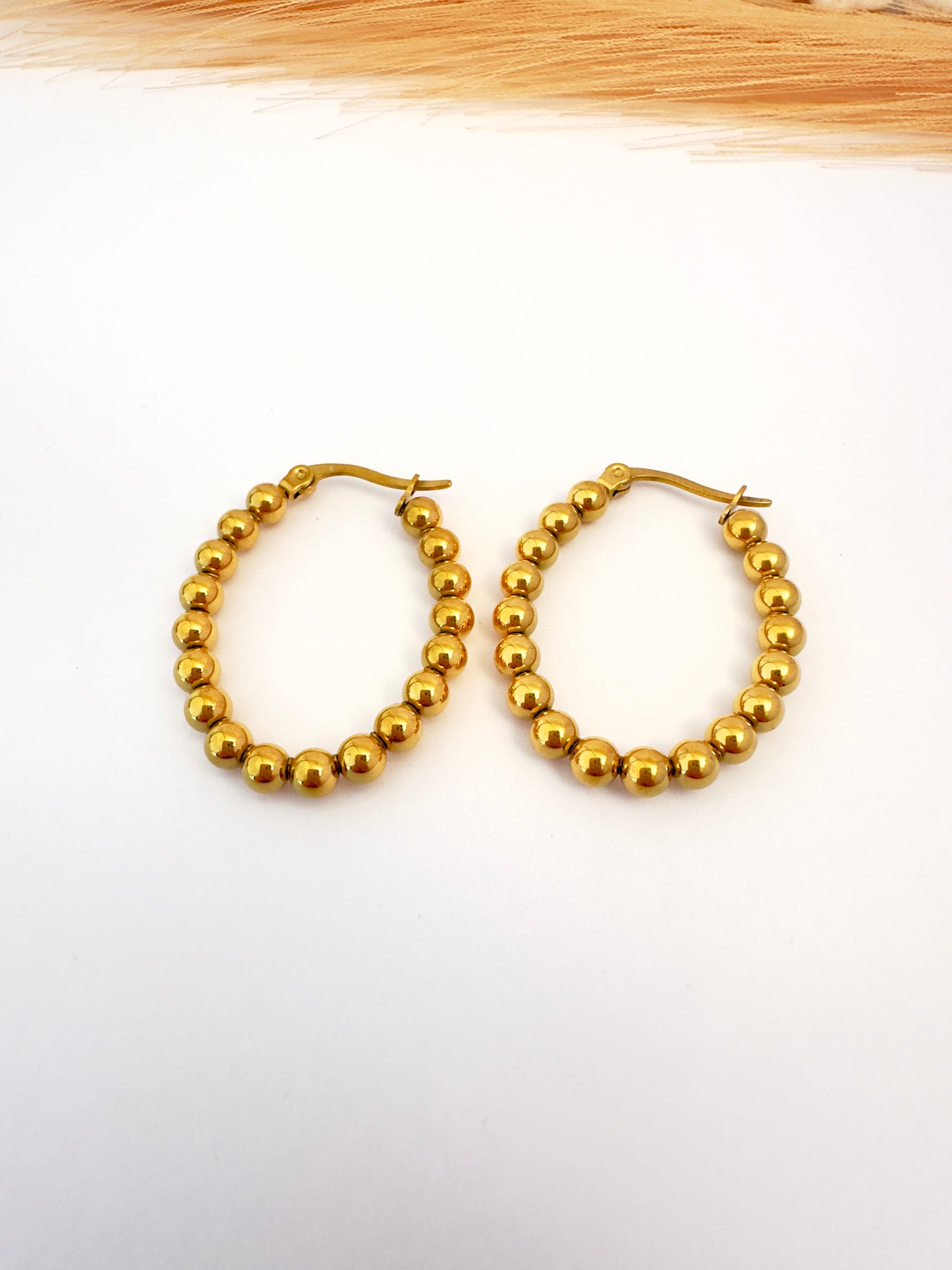 Diseño clásico con un toque de estilo: estas argollas formadas por pequeñas esferas doradas combinan lo tradicional con lo moderno. Perfectas para elevar cualquier outfit con un brillo elegante y llamativo.