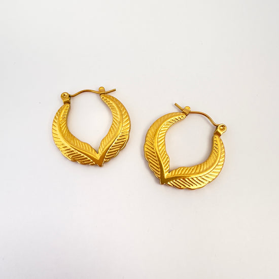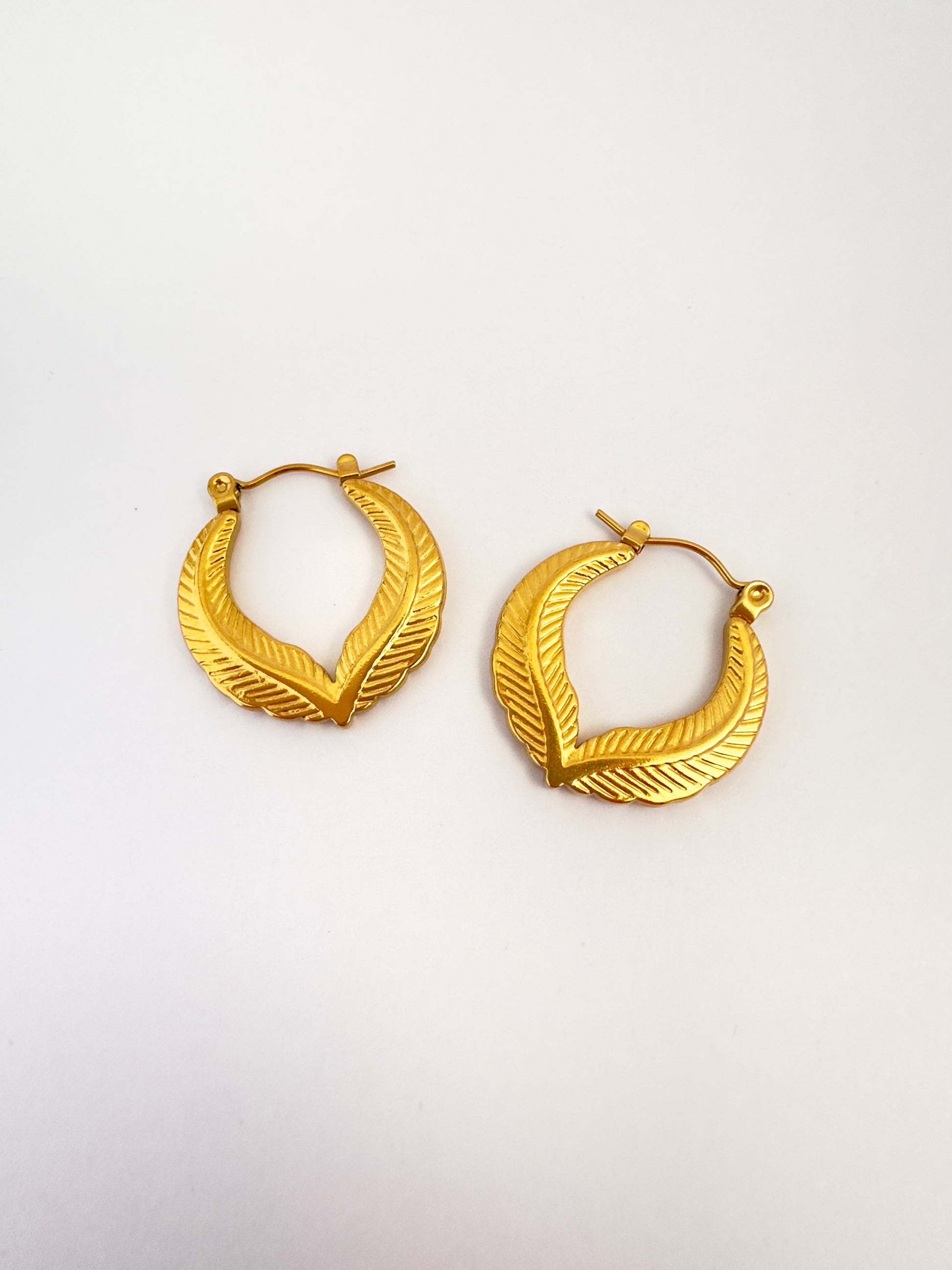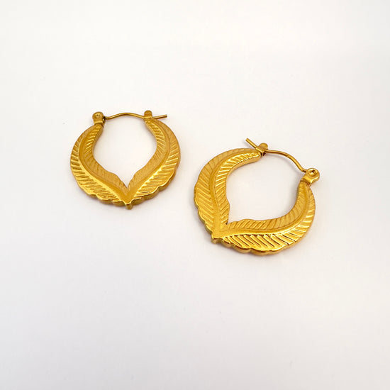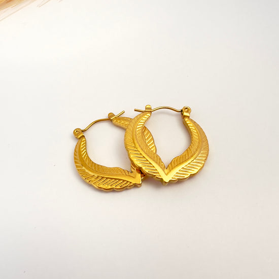 Inspirados en la elegancia de la naturaleza, estos aros con forma de hoja estilizada combinan fuerza y delicadeza. Su textura grabada y su diseño curvo aportan un toque artístico y bohemio a cualquier look. Perfectos para quienes aman destacar sin perder la esencia natural.