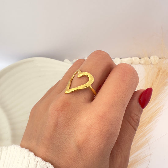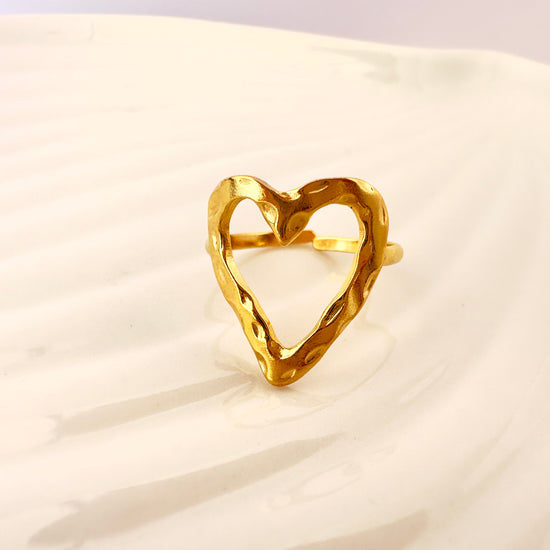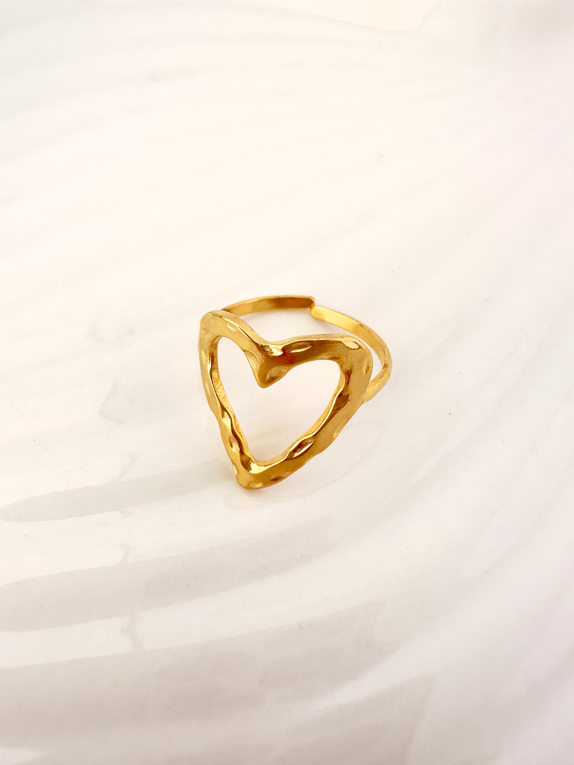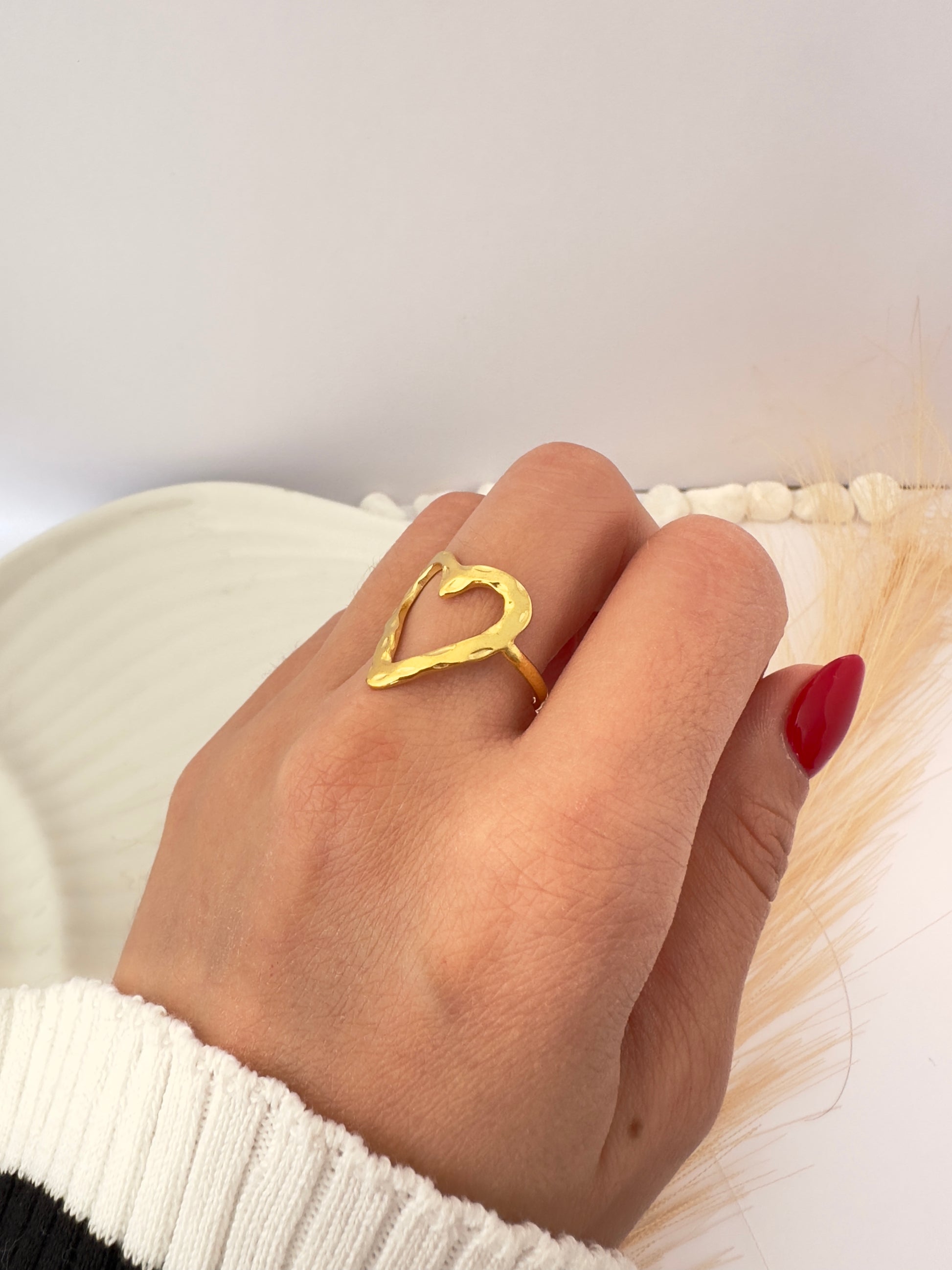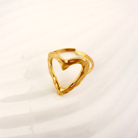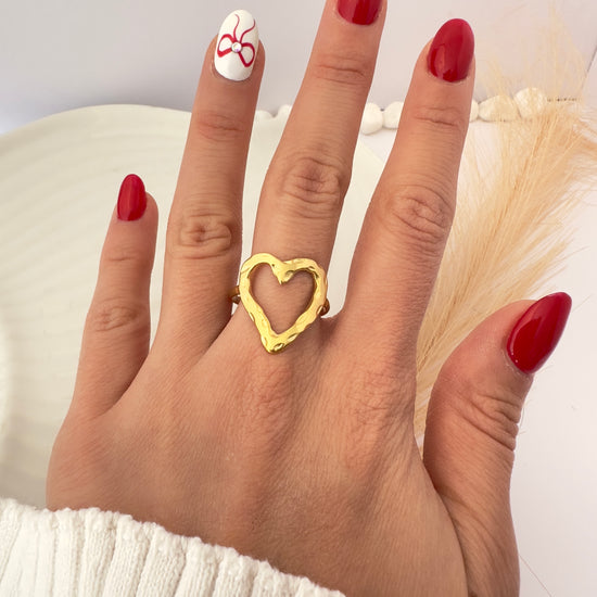 Un diseño que celebra lo auténtico, lo imperfecto y lo emocional. Este anillo con forma de corazón asimétrico transmite ternura y carácter al mismo tiempo.