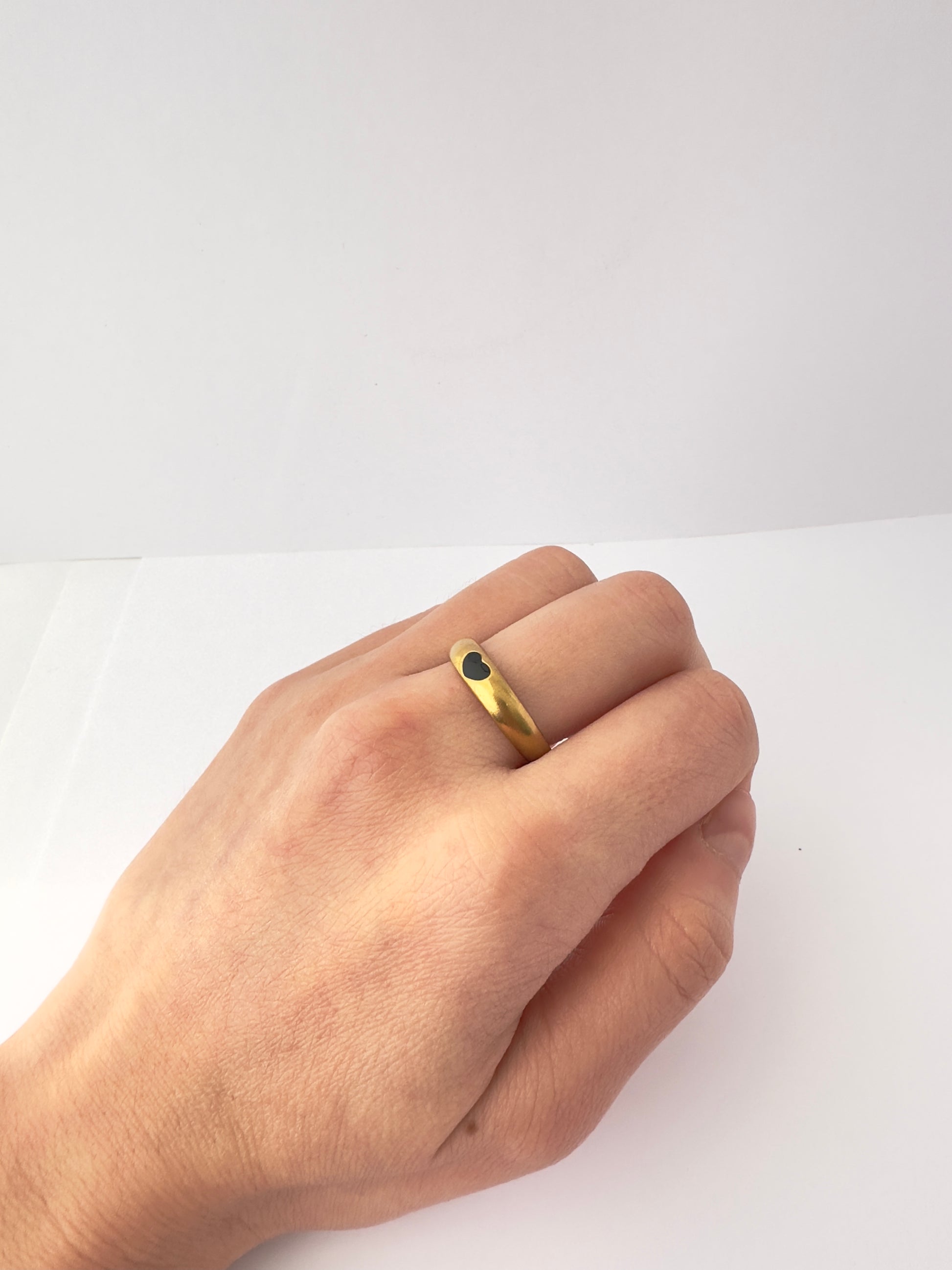 💡 Ideal para regalar o usar en conjunto con otros anillos dorados. Es una pieza versátil que puede llevarse sola o combinada, y su corazón negro aporta un simbolismo moderno: amor maduro, introspectivo, emocional.