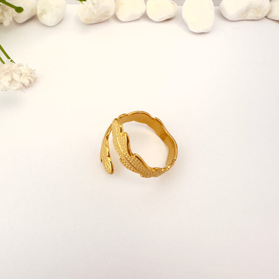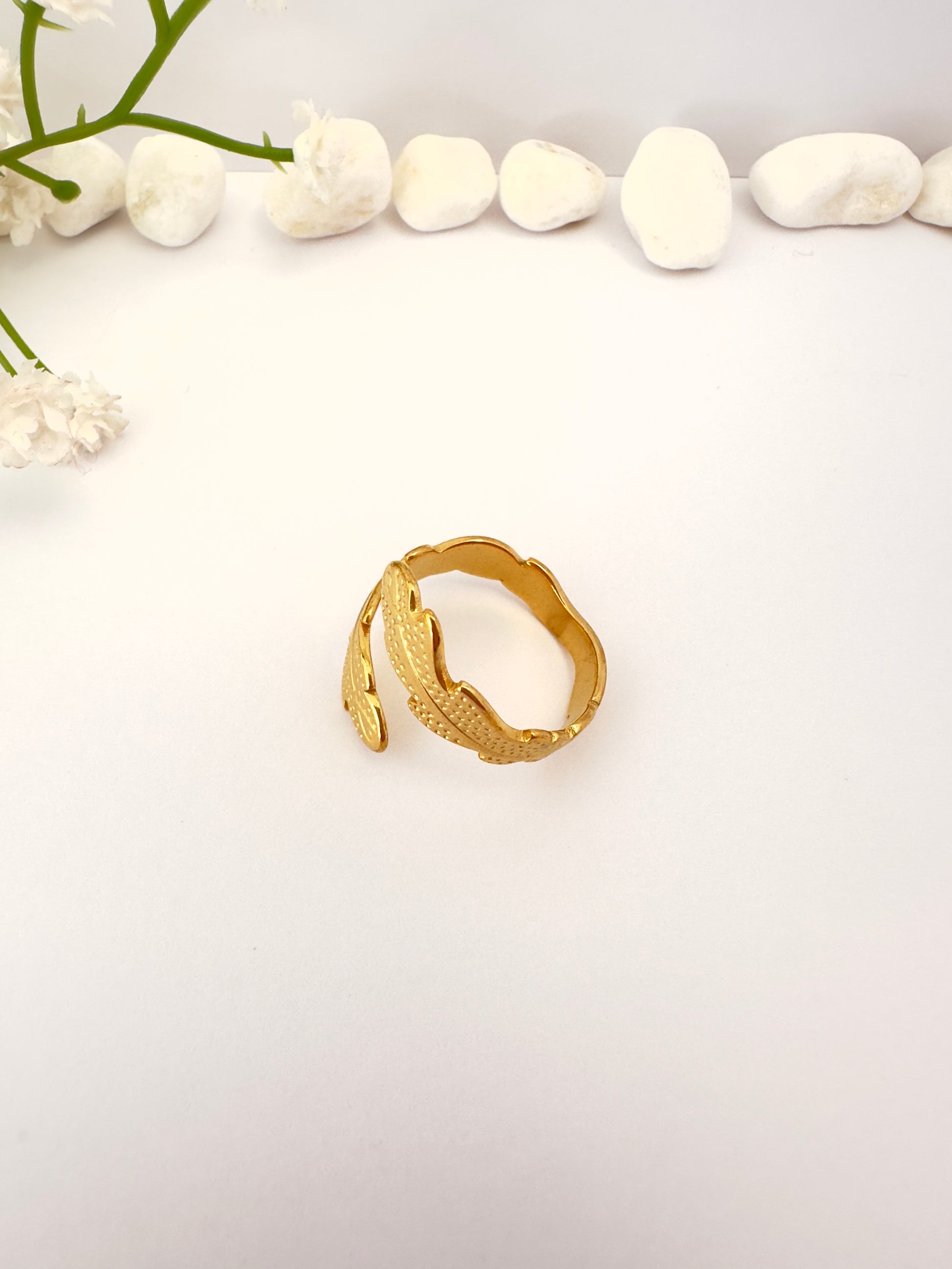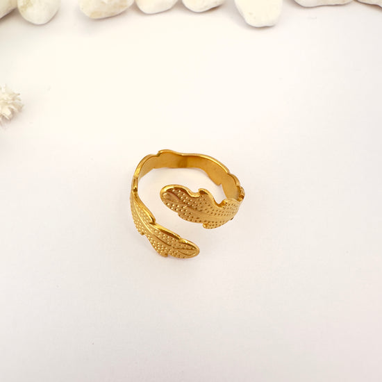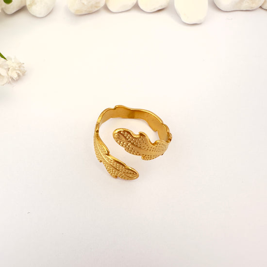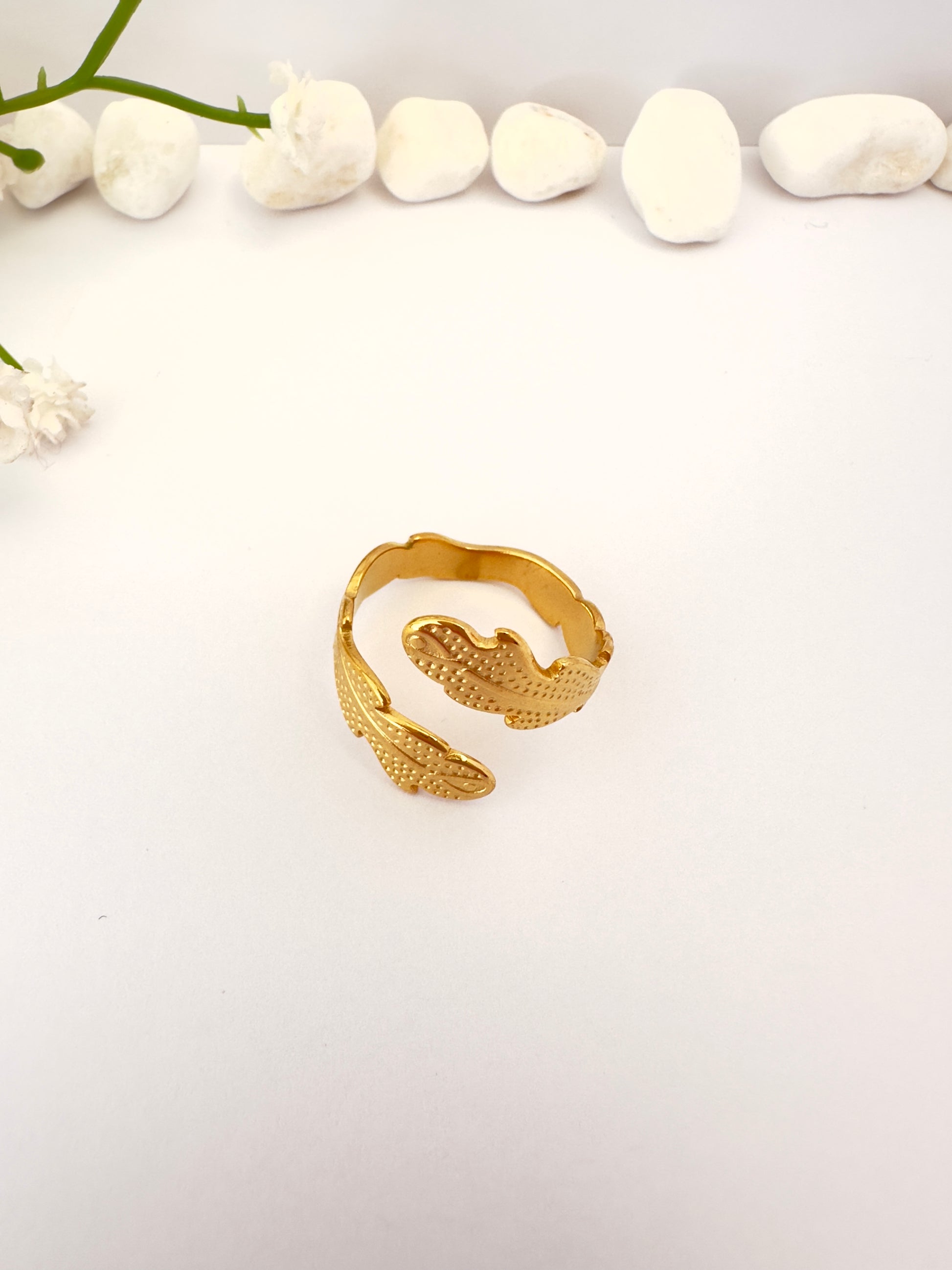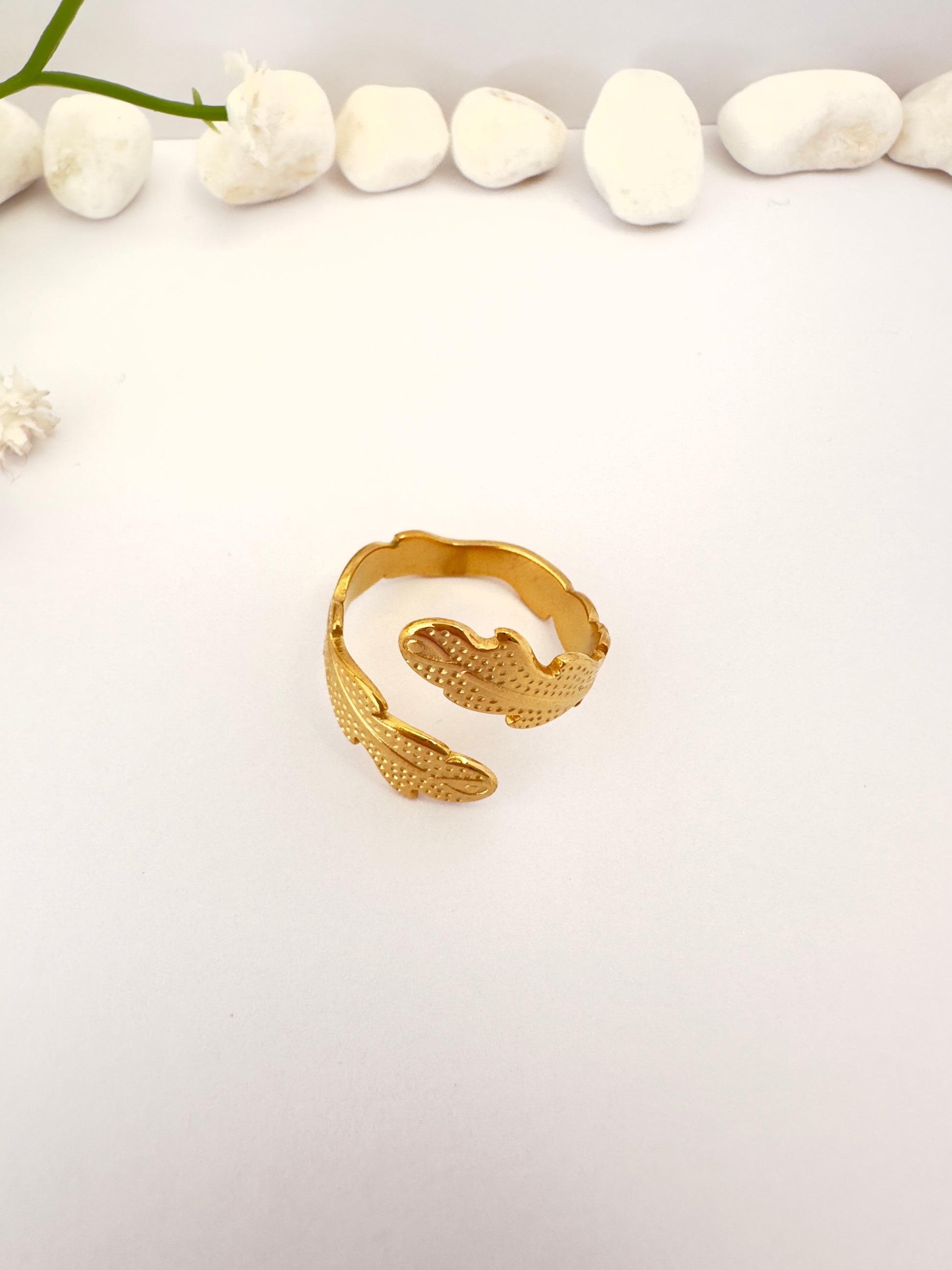 El Anillo Hojas Doradas es una joya elegante y delicada que evoca la armonía de la naturaleza. Su diseño abierto con dos hojas finamente texturizadas simboliza crecimiento, renovación y conexión con lo natural. Perfecto para complementar un look sofisticado o bohemio, gracias a su acabado brillante y su forma ajustable.