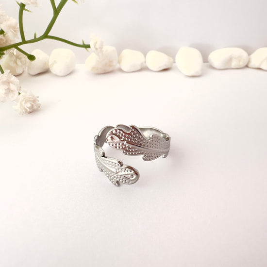 Anillo Hojas Plateadas - Ajustable
