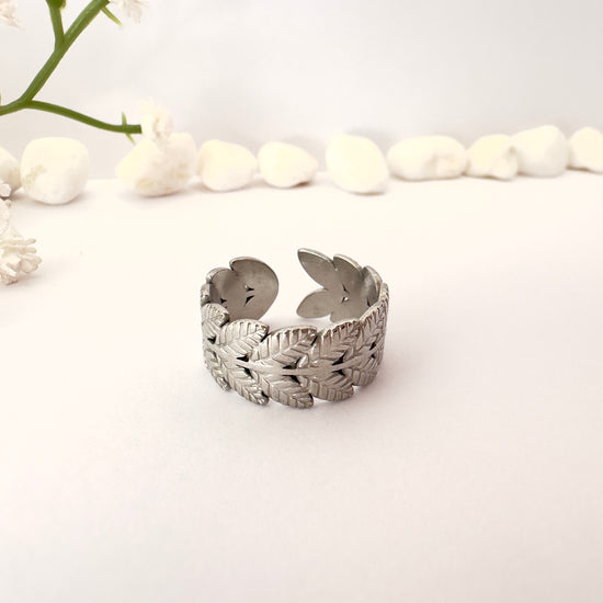 Inspirado en la naturaleza, este anillo es sinónimo de fuerza, crecimiento y elegancia. El diseño de hojas entrelazadas en acabado dorado crea una pieza que habla por sí sola.