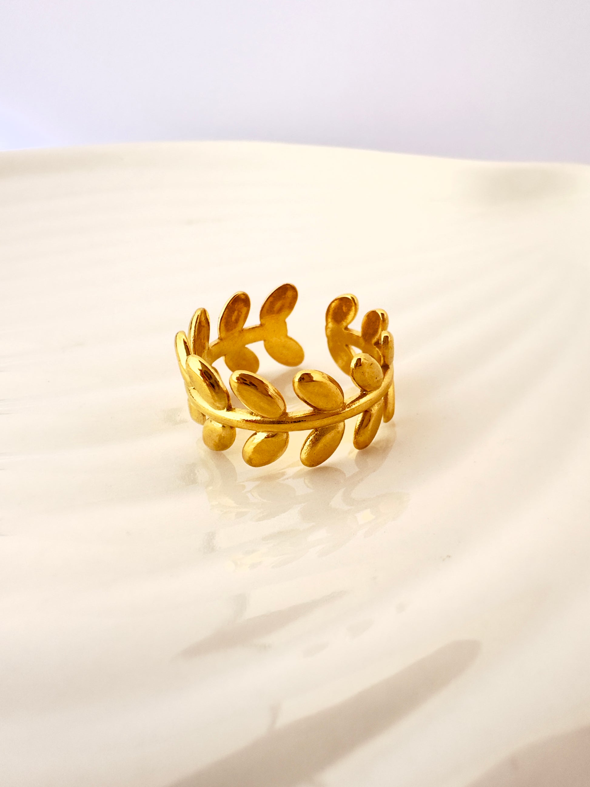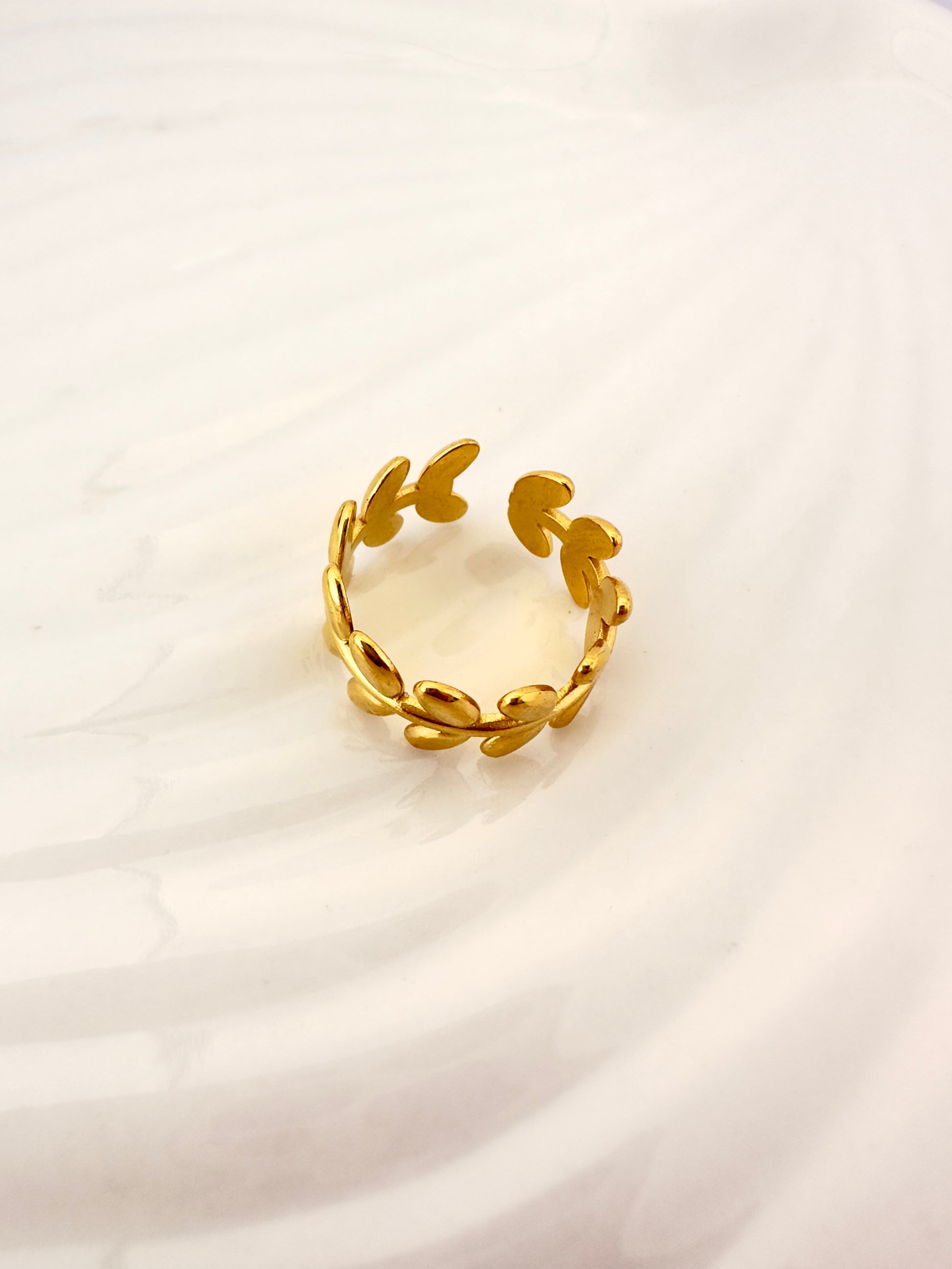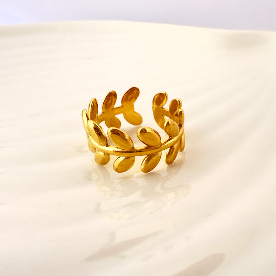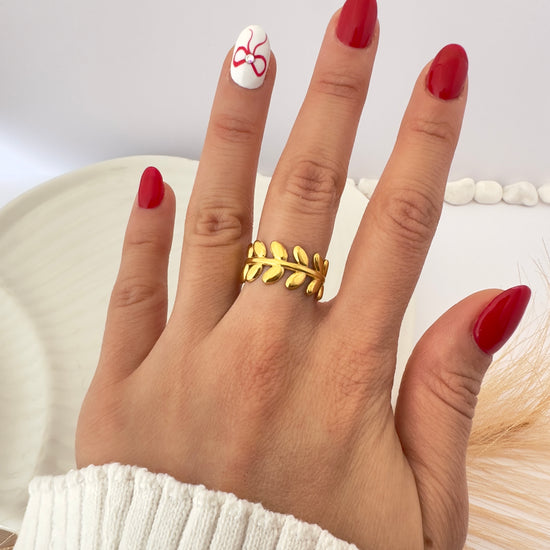 Inspirado en las coronas de laurel, este anillo transmite elegancia natural y simbolismo de triunfo. Ideal para elevar cualquier look con un toque sofisticado.