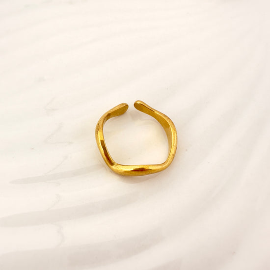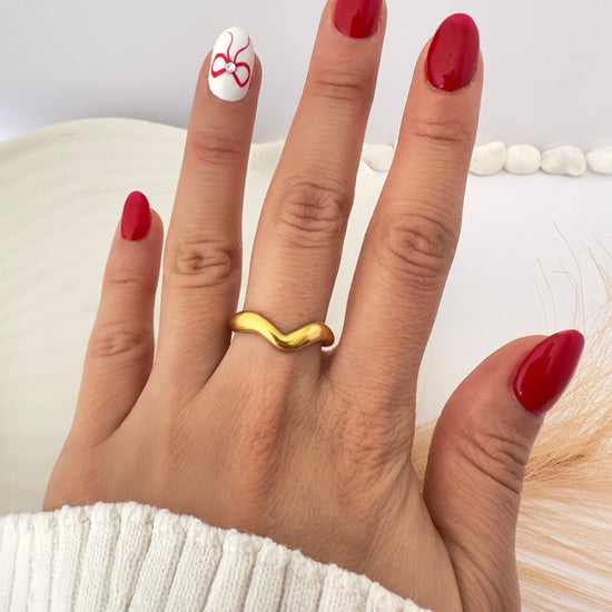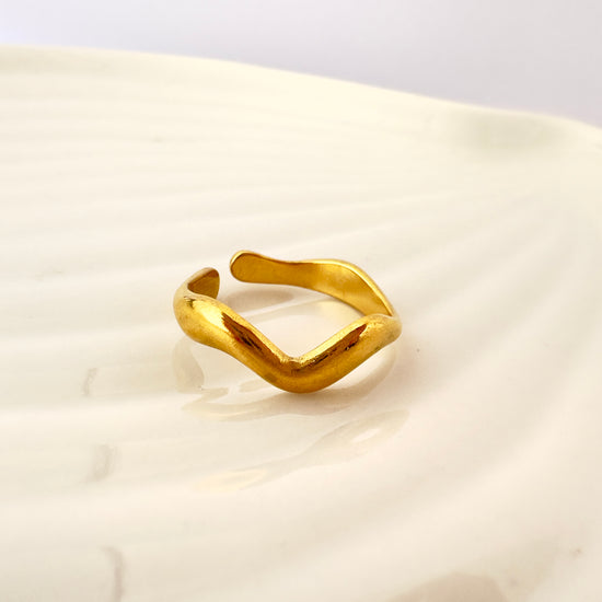 Sutil, elegante y fácil de combinar. Su diseño en forma de onda aporta un detalle moderno que complementa cualquier estilo sin recargar. Ideal para usar solo o apilar con otros anillos.