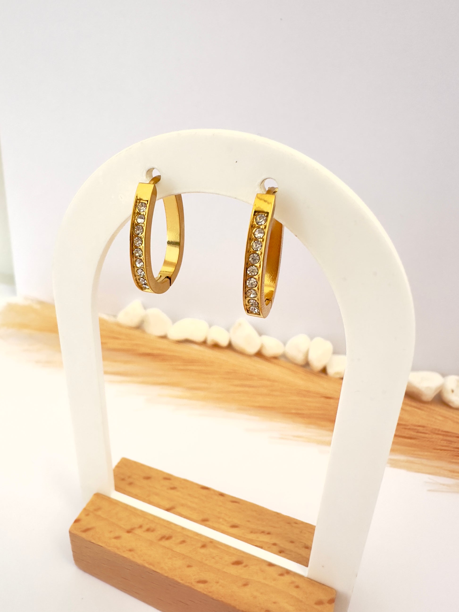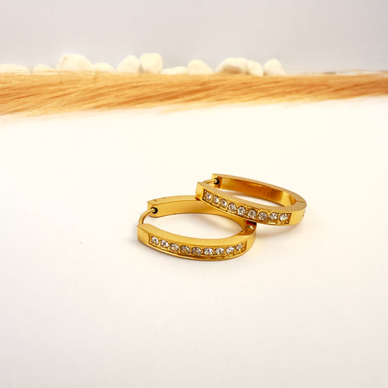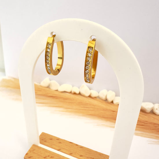 Diseño: Argollas semi anchas con incrustaciones