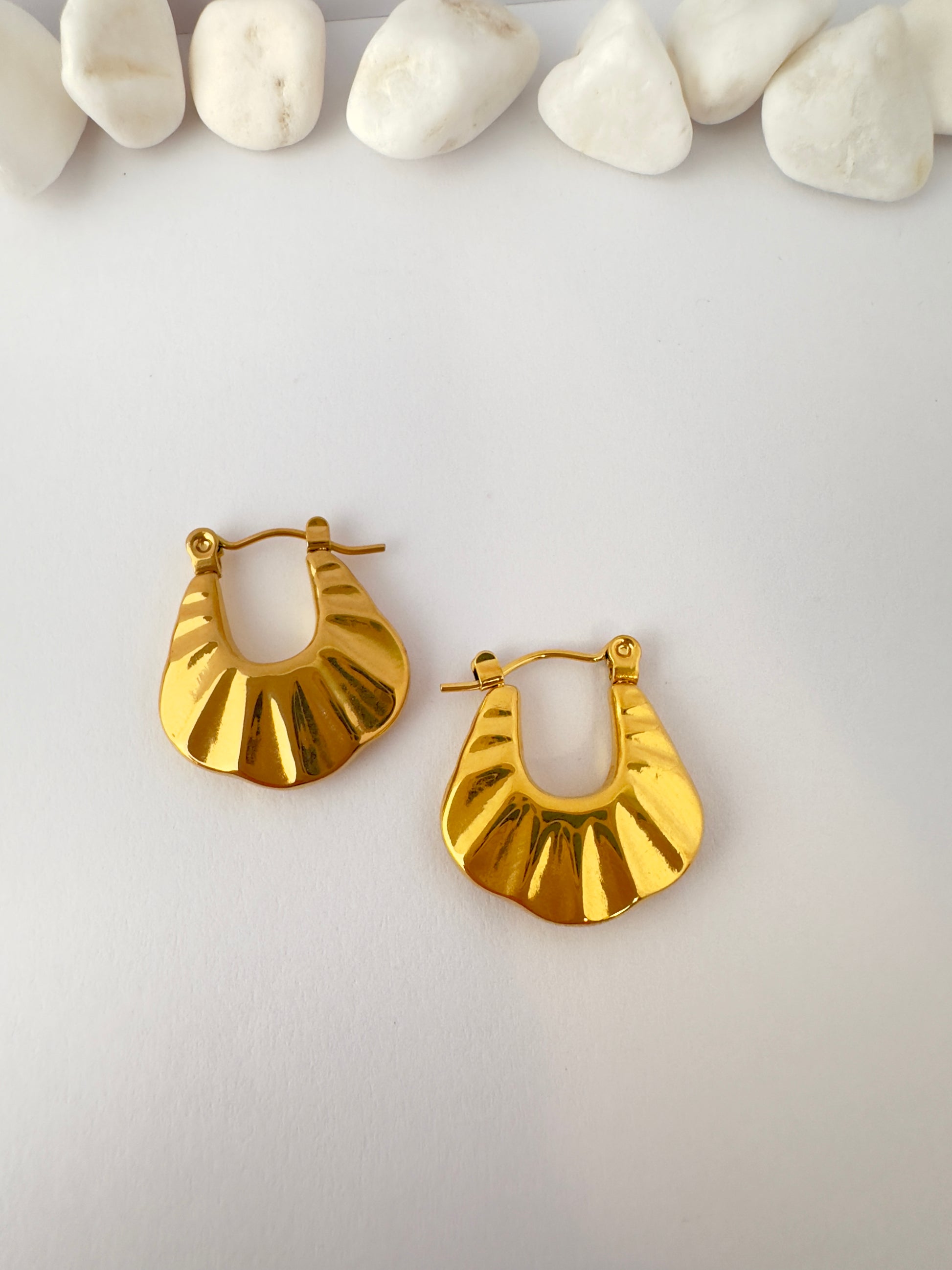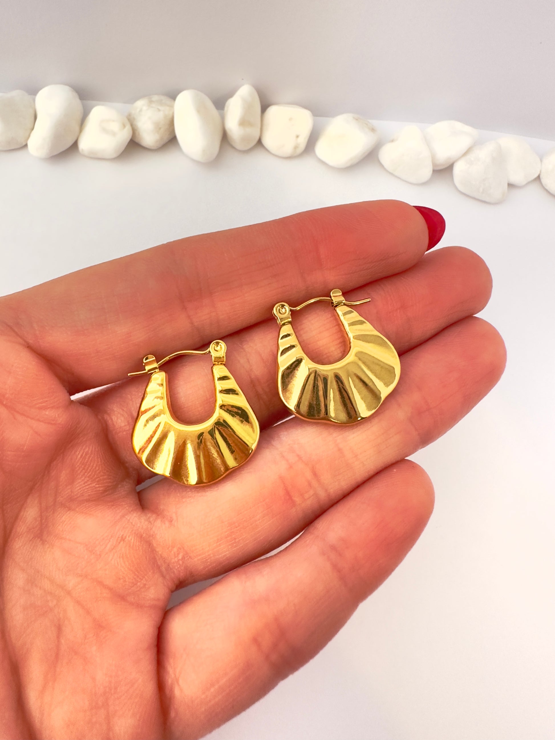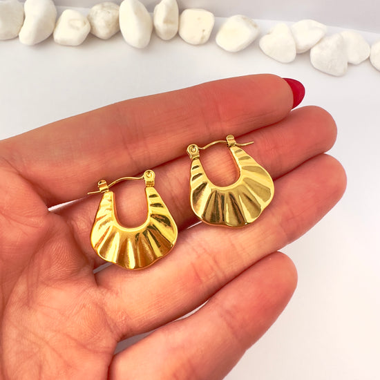 ✨ Diseño con forma de gota ancha y detalles en relieve que reflejan la luz con elegancia. Son llamativas, sofisticadas y muy fáciles de combinar.