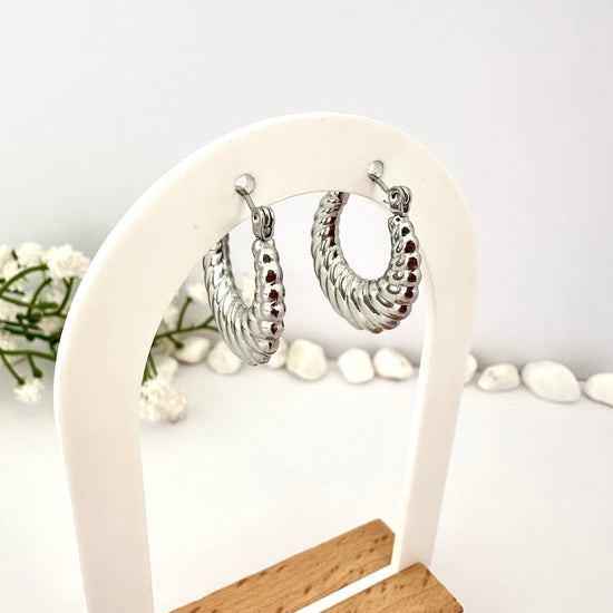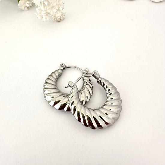 Argollas Plateadas con Relieve Acanalado - 2,5cm