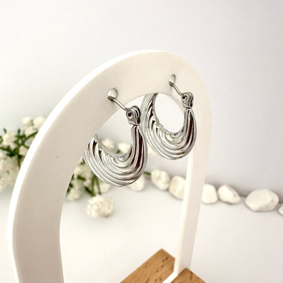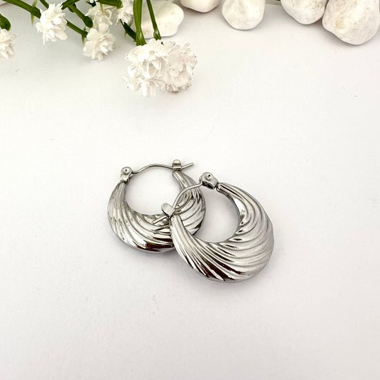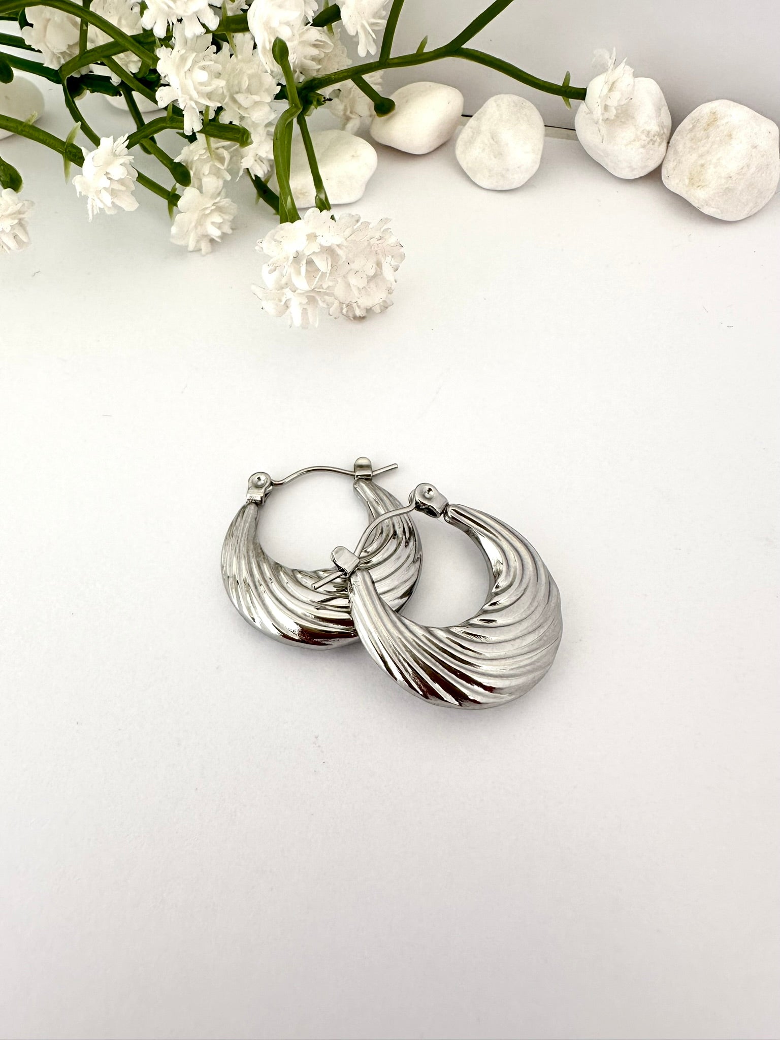 Las Argollas Plateadas Onduladas combinan elegancia y textura en un diseño que refleja la luz desde distintos ángulos, creando un brillo sofisticado y atemporal. Su acabado ondulado aporta un detalle moderno sin perder la esencia clásica de las argollas tradicionales. Livianas, cómodas y versátiles: perfectas para usar todos los días o elevar cualquier look.