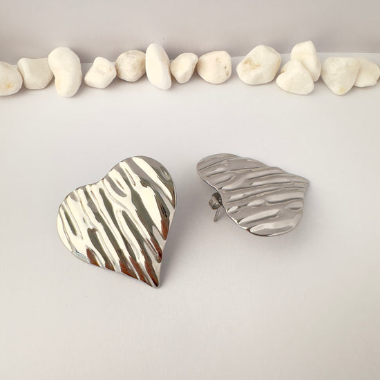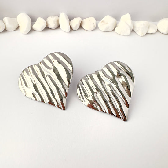 Aros Corazón Texturizado – Acero Plateado - 4cm
