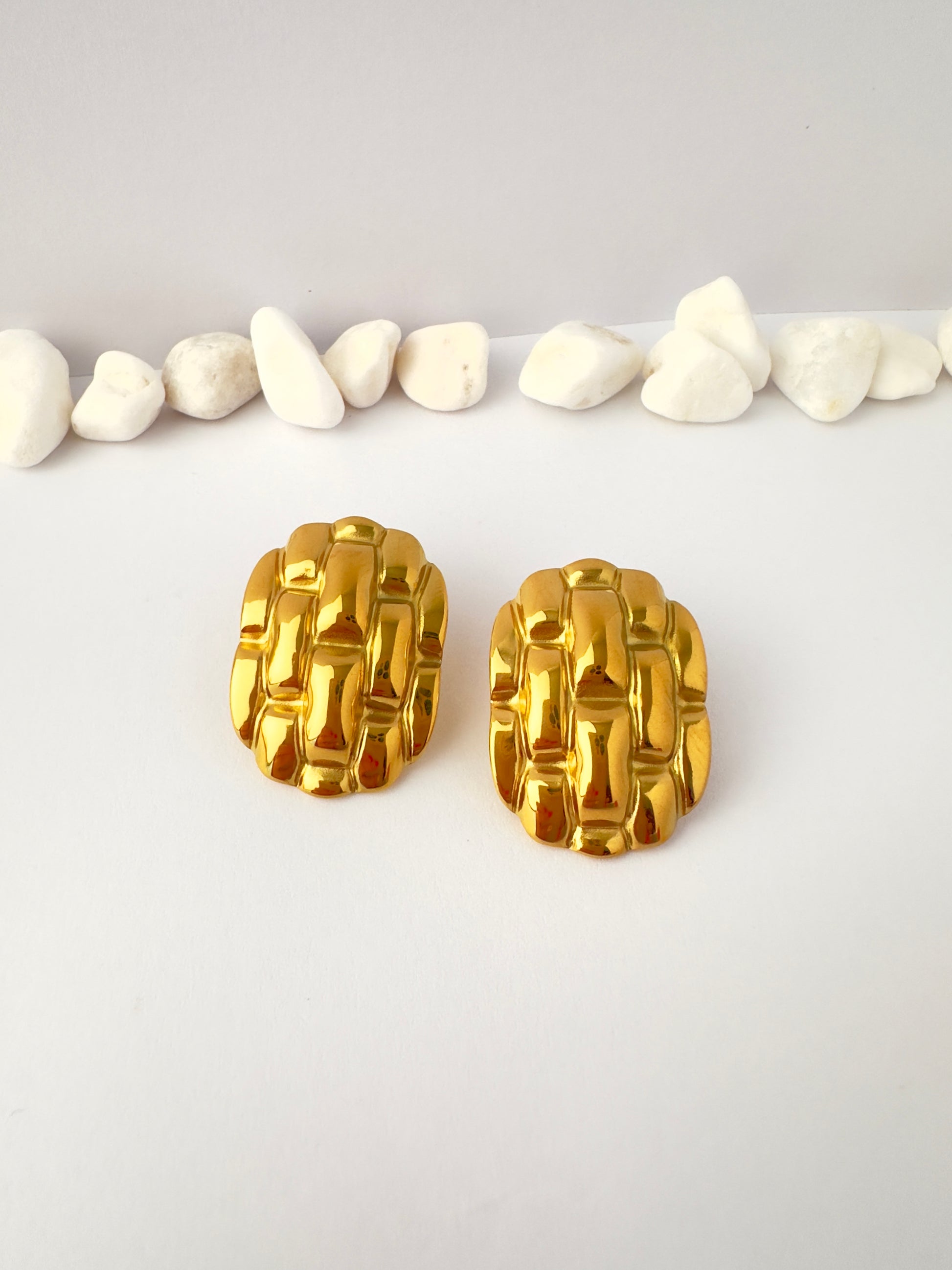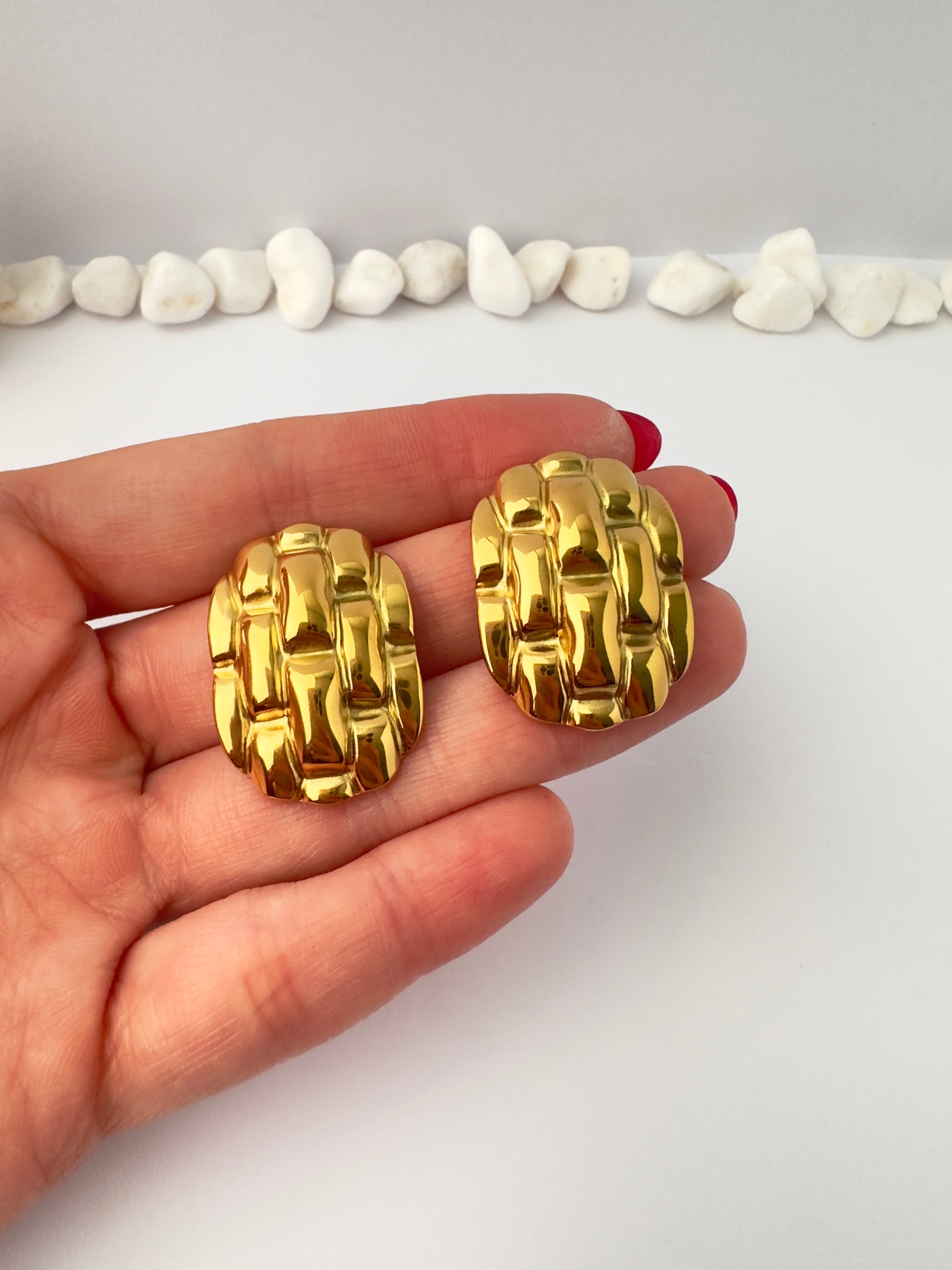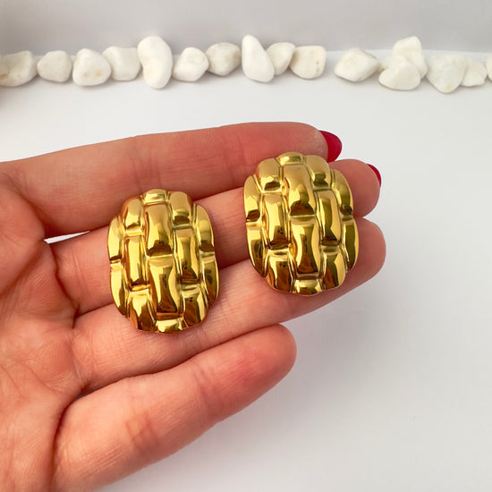 Diseño abombado con textura entrelazada tipo canasto, que aporta dimensión y carácter. Ideales para quienes aman los accesorios con diseño y presencia.