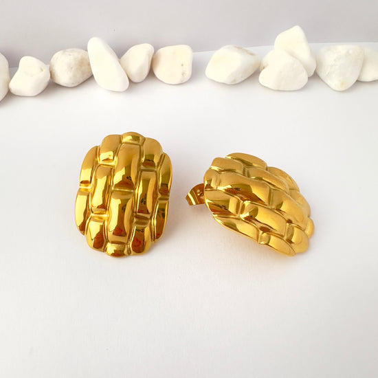 Perfectos para emprendedoras que quieren ofrecer un modelo llamativo pero elegante. Este diseño combina bien tanto con looks casuales como con tenidas más formales, gracias a su textura original y acabado dorado pulido.