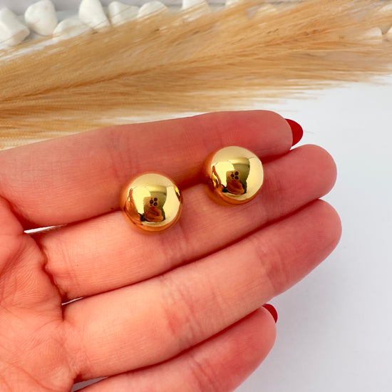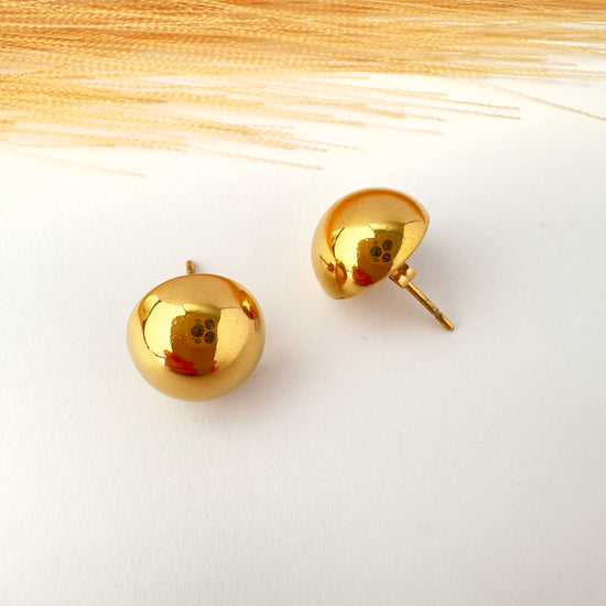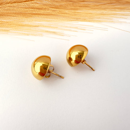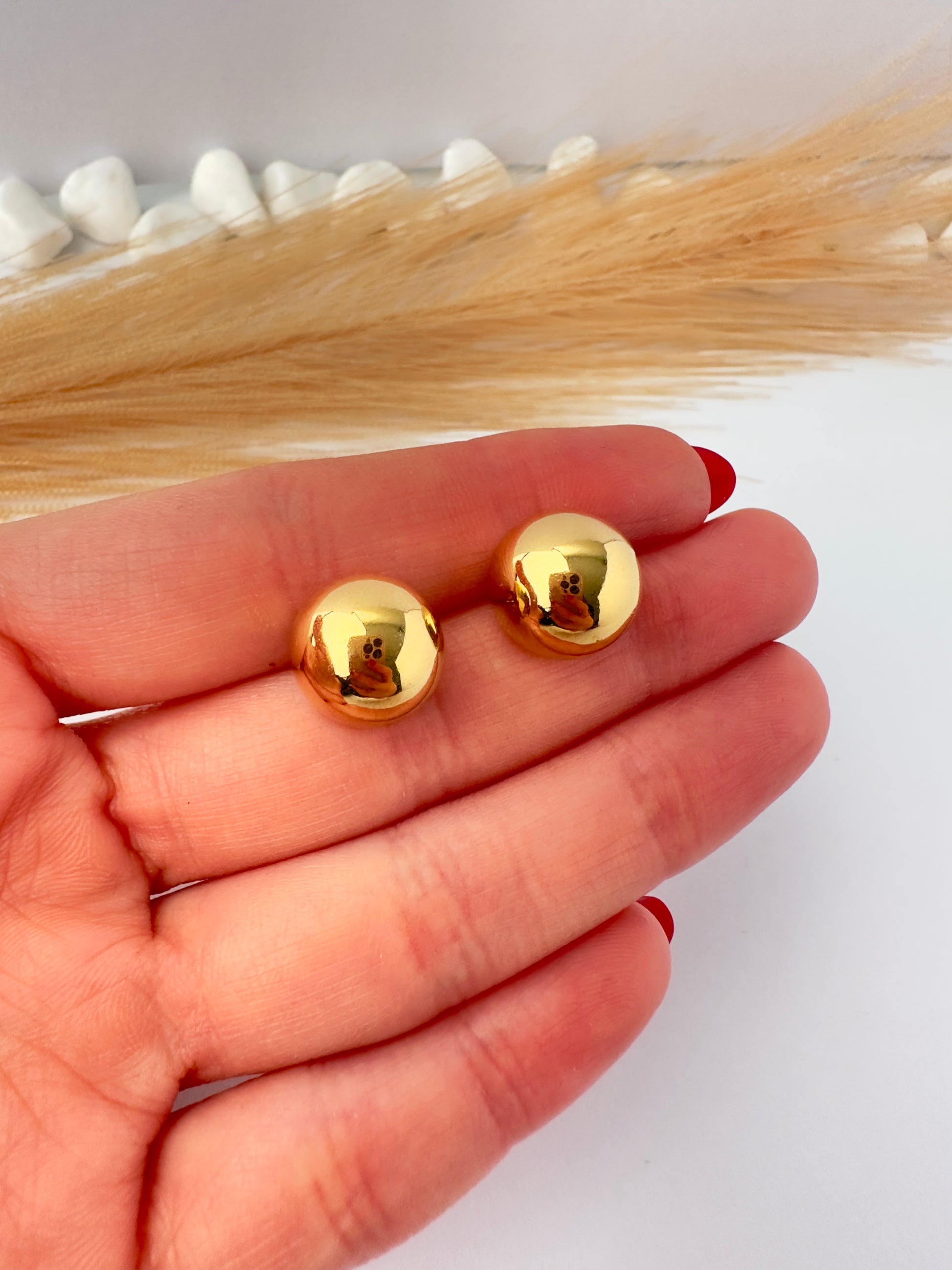 ✨ Un clásico con acabado espejo que nunca falla. Estos pendientes en forma de semiesfera destacan por su brillo pulido y diseño minimalista. Son versátiles, livianos y elevan cualquier look con un toque moderno y elegante.