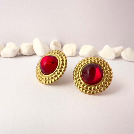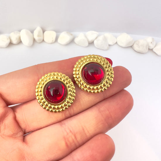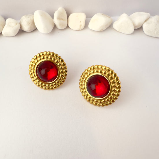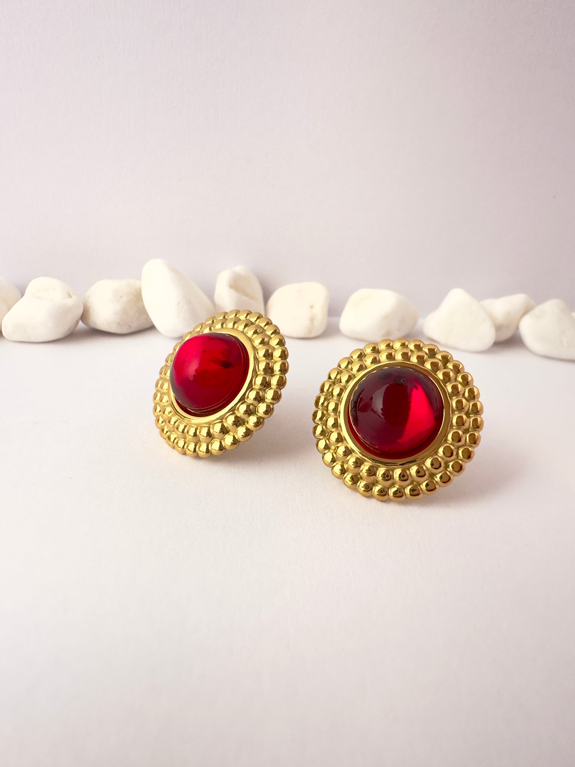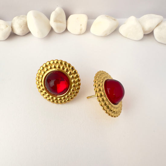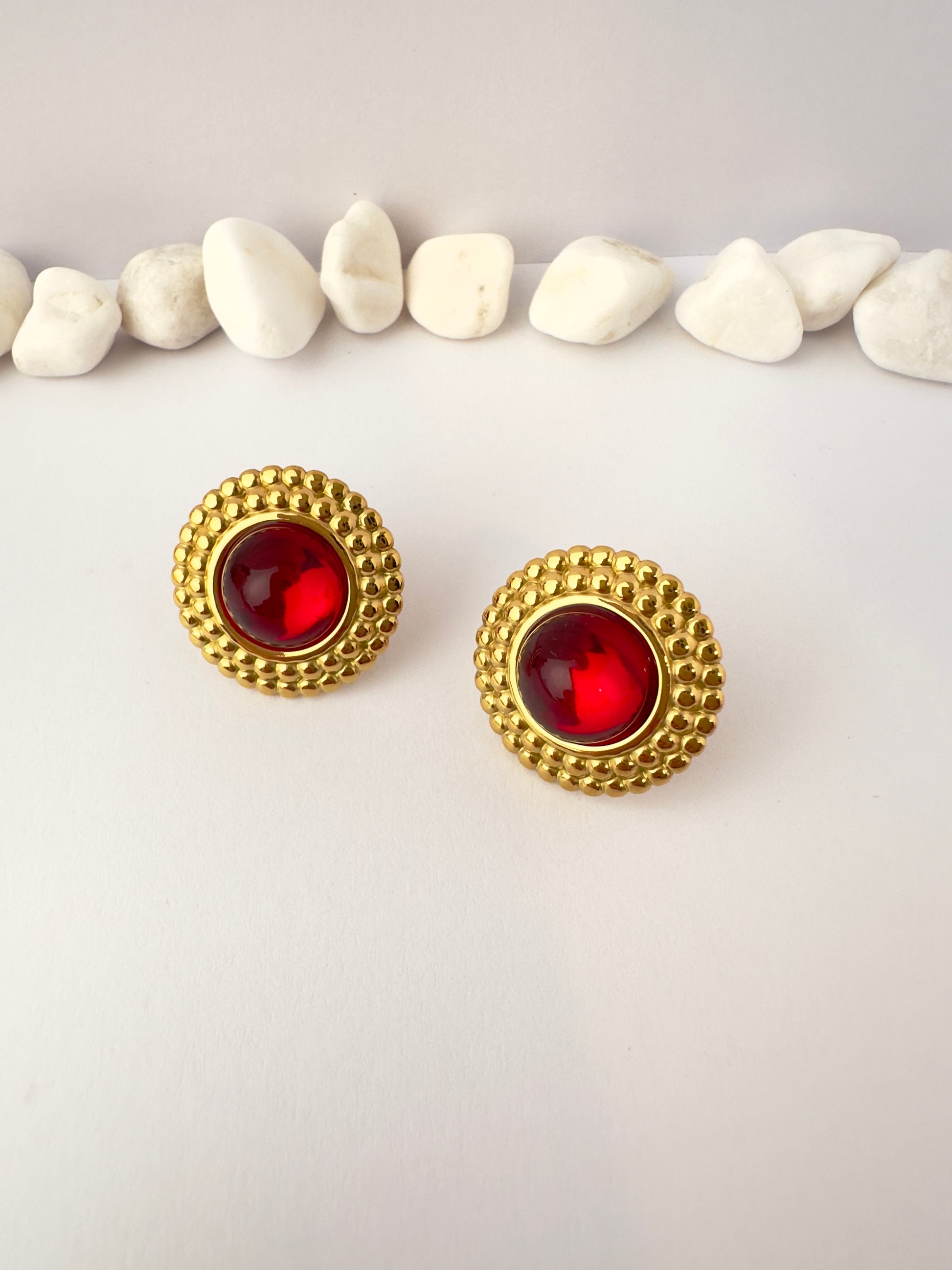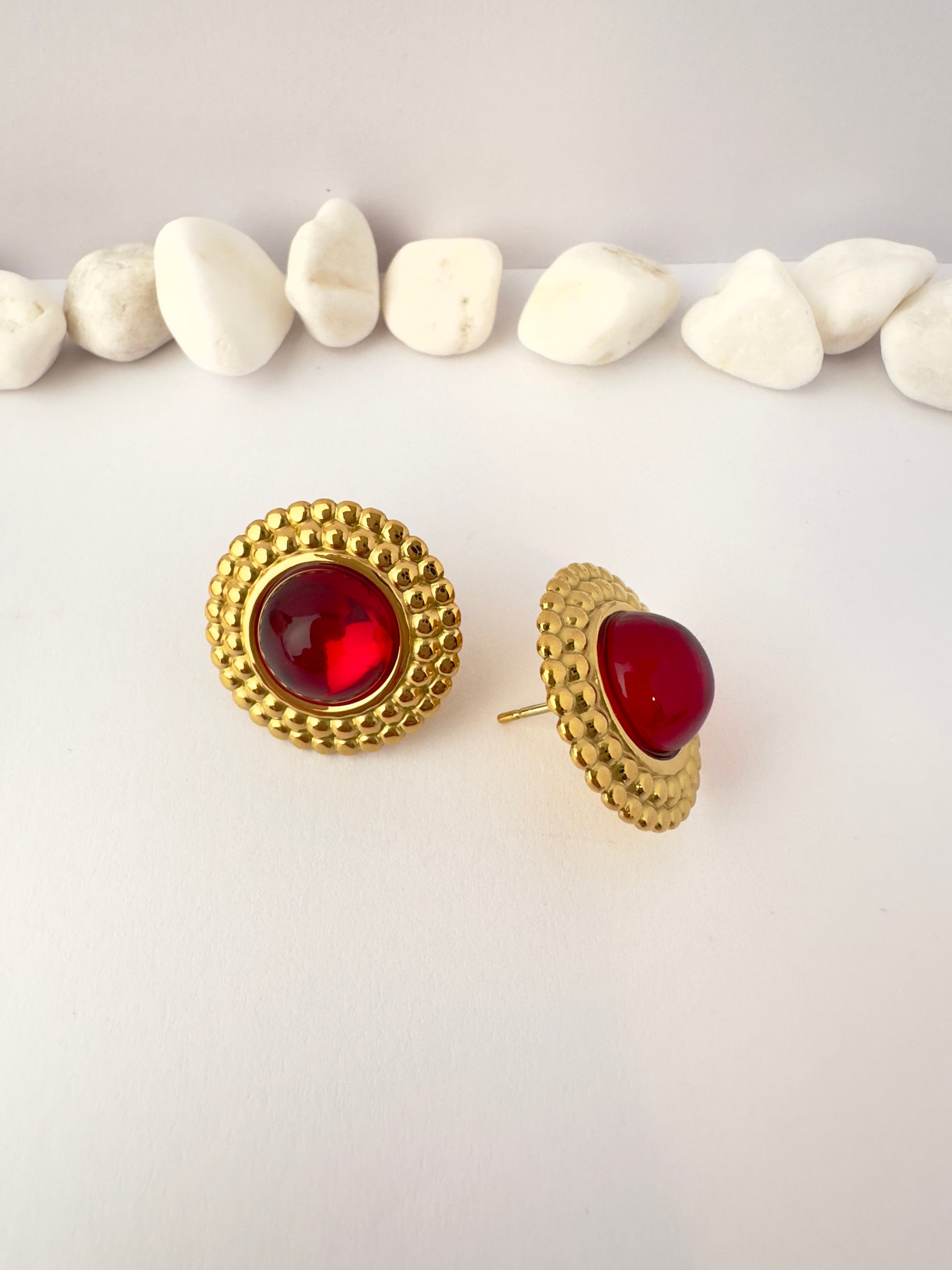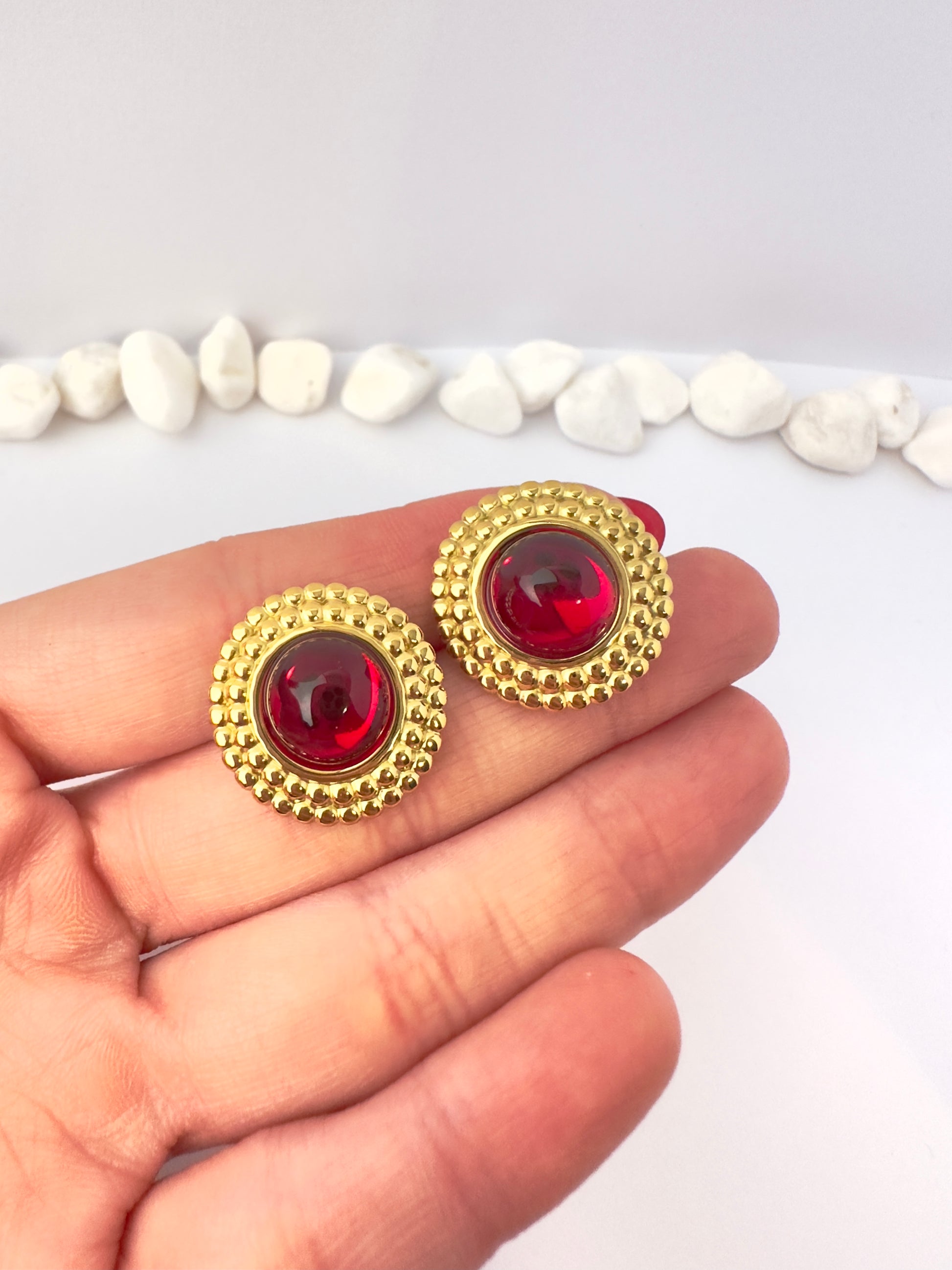 ❤️ Diseño elegante y clásico, con un centro rojo estilo rubí rodeado de detalles en relieve tipo perla. Una joya con carácter, ideal para destacar.