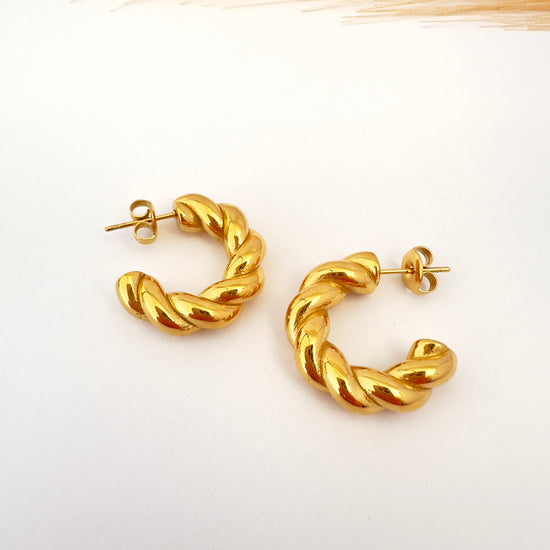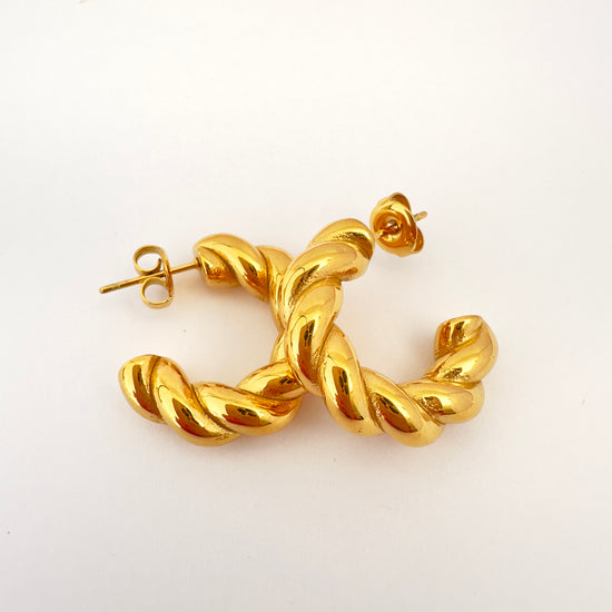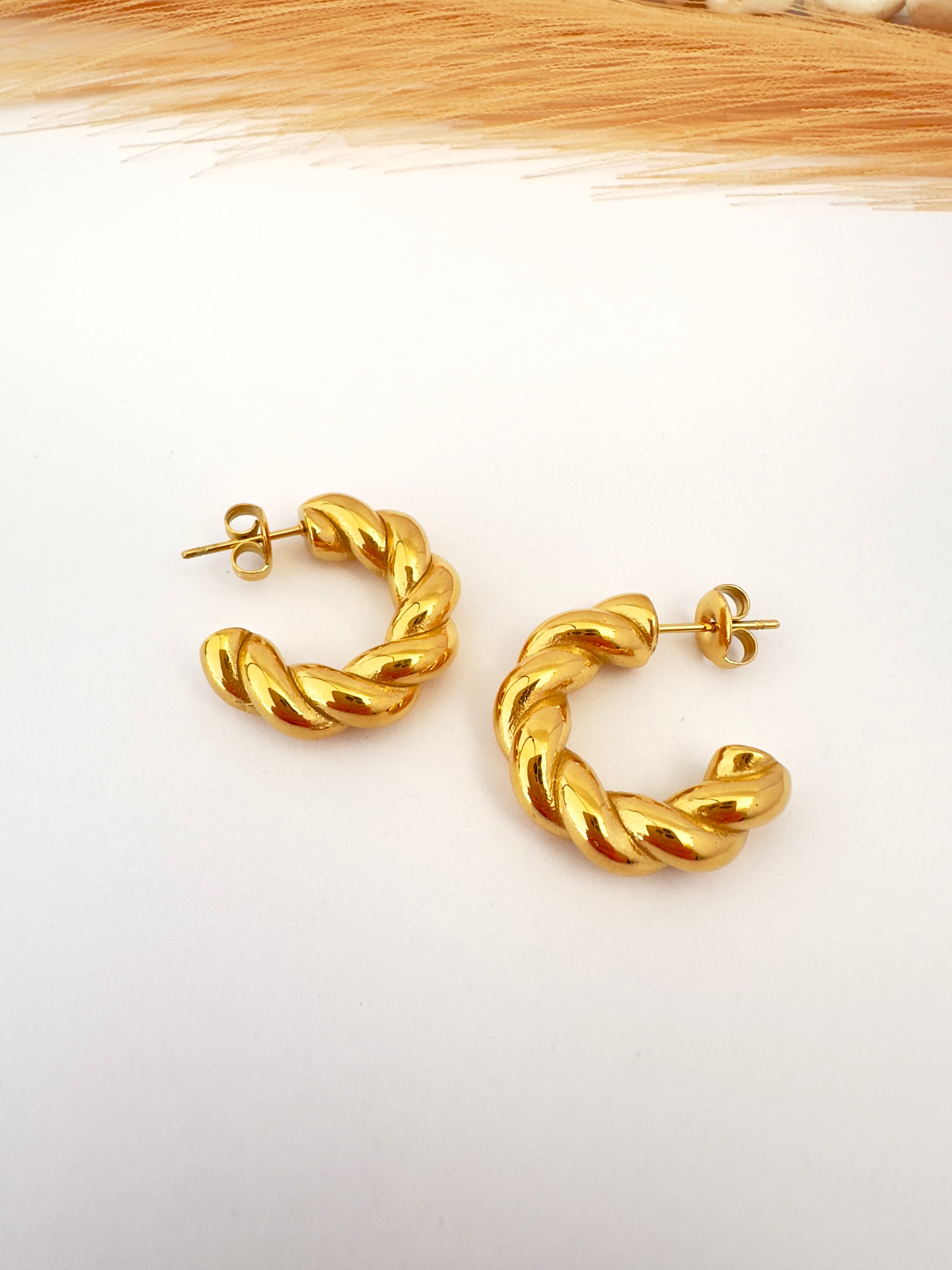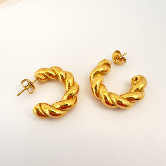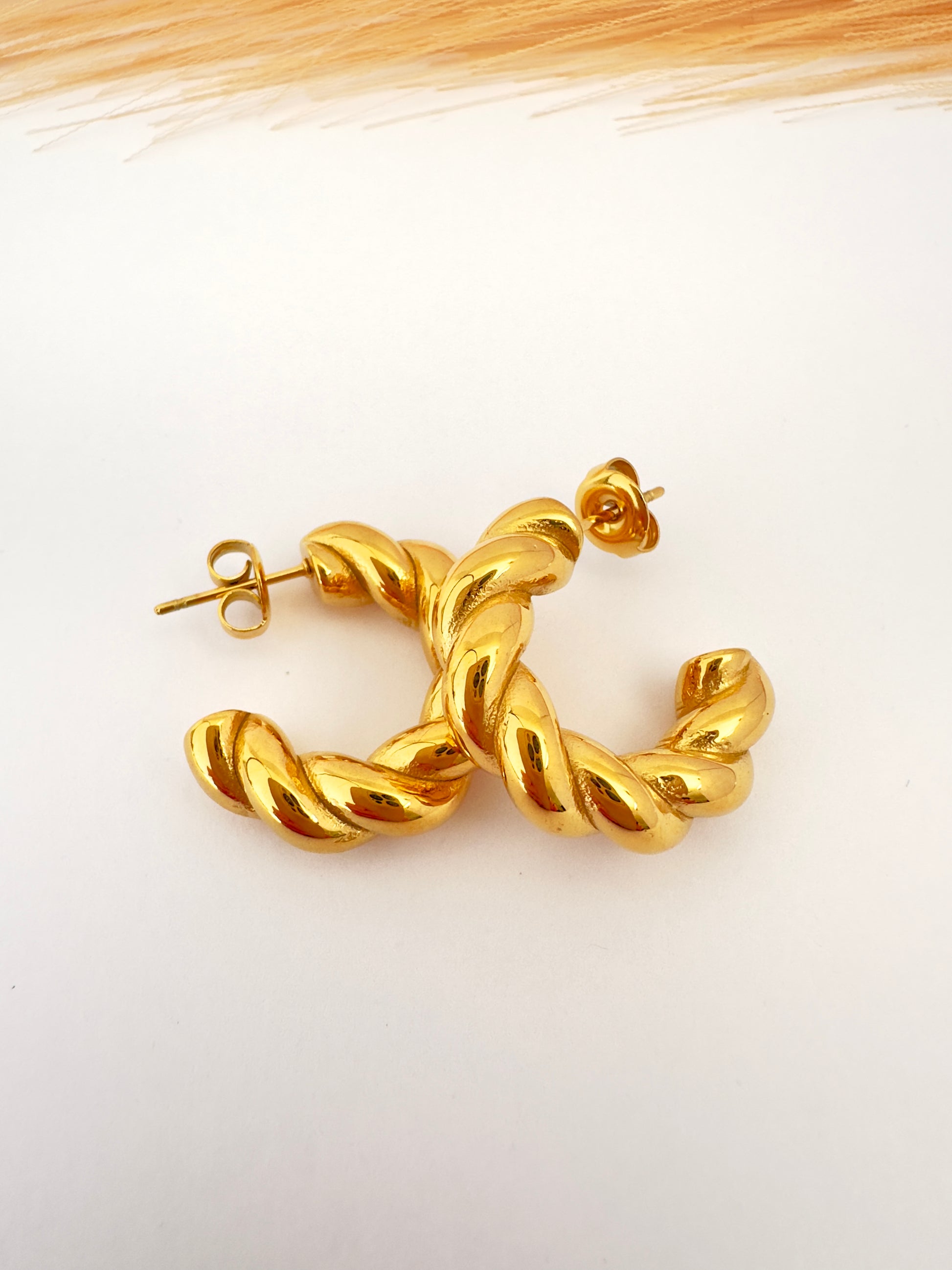 Un clásico reinventado. Estos aros con diseño trenzado aportan textura, volumen y brillo a tu estilo diario.