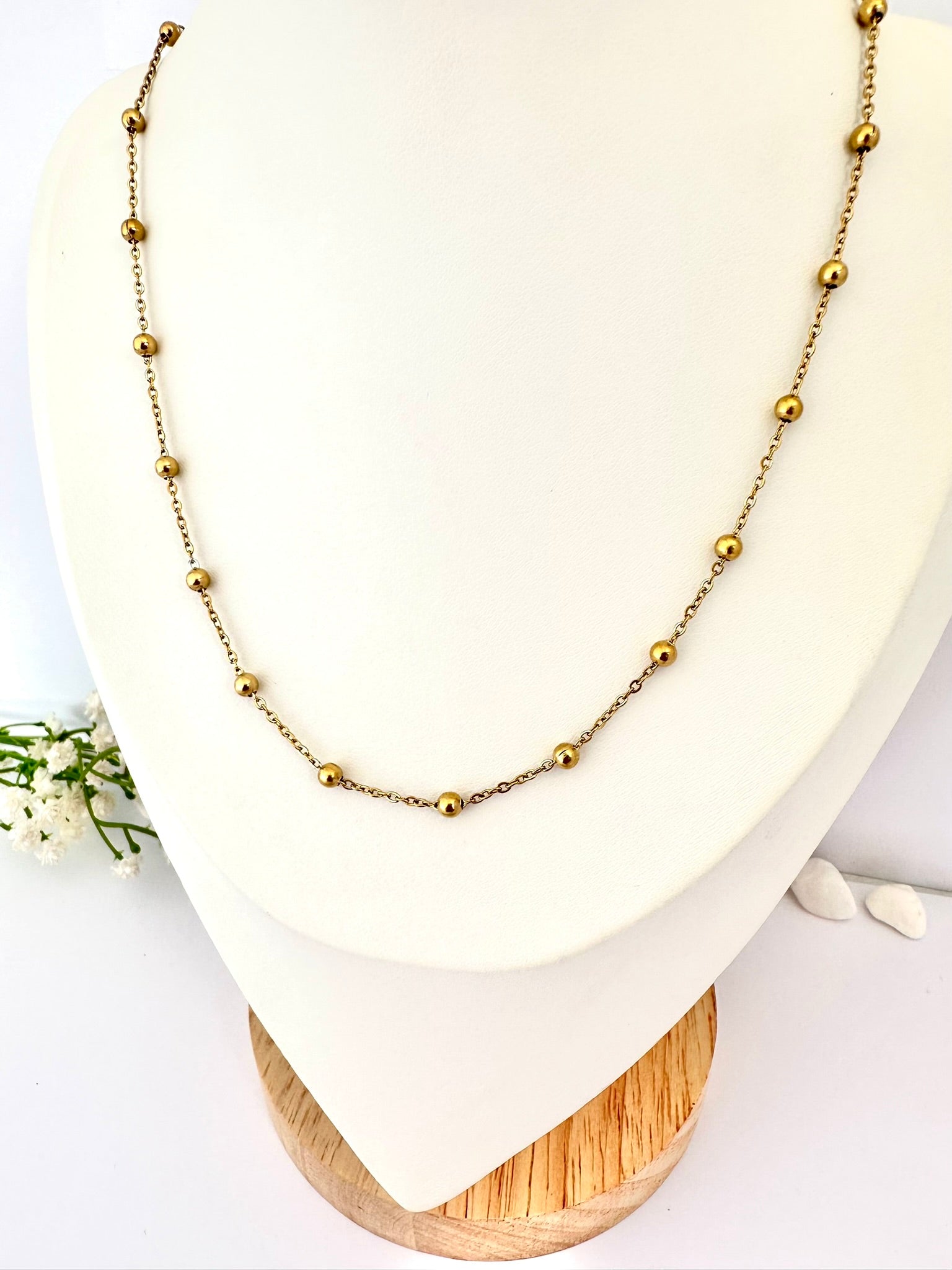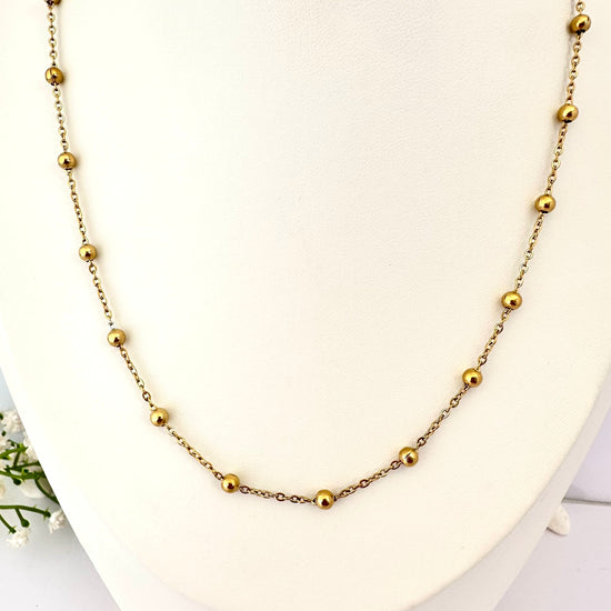 Perfecta para quienes buscan cadenas doradas con bolitas o para emprendedores que revenden joyas de acero inoxidable en Chile con excelente rotación y demanda.