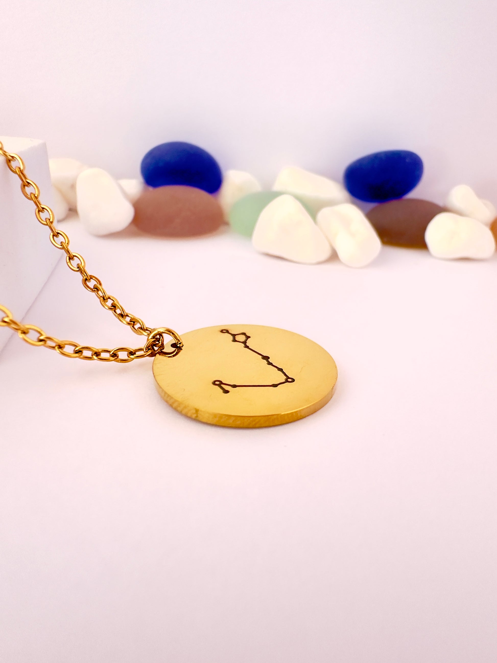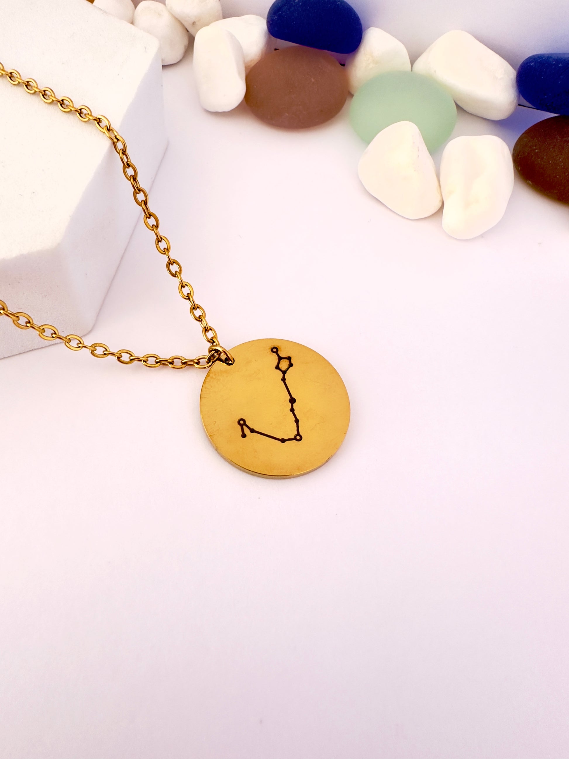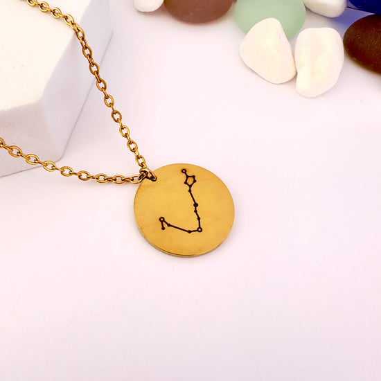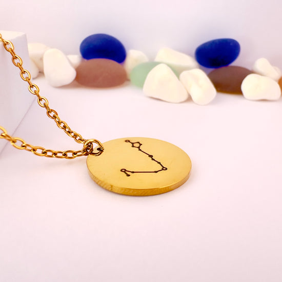 Un diseño delicado que representa la sensibilidad, intuición y empatía de Piscis. Este collar con dije circular lleva grabada la constelación del signo, perfecto para quienes conectan con su lado más espiritual.