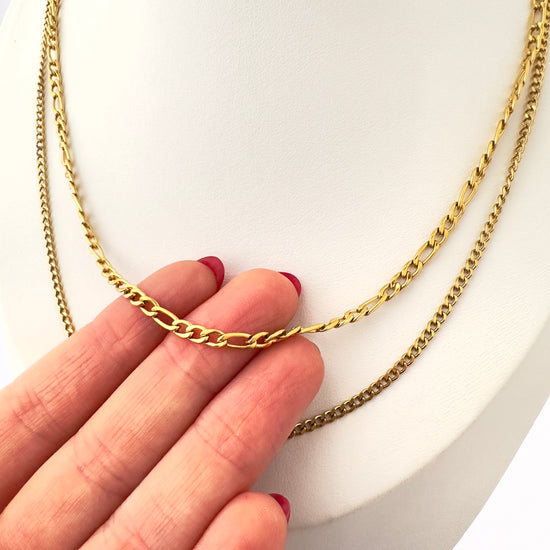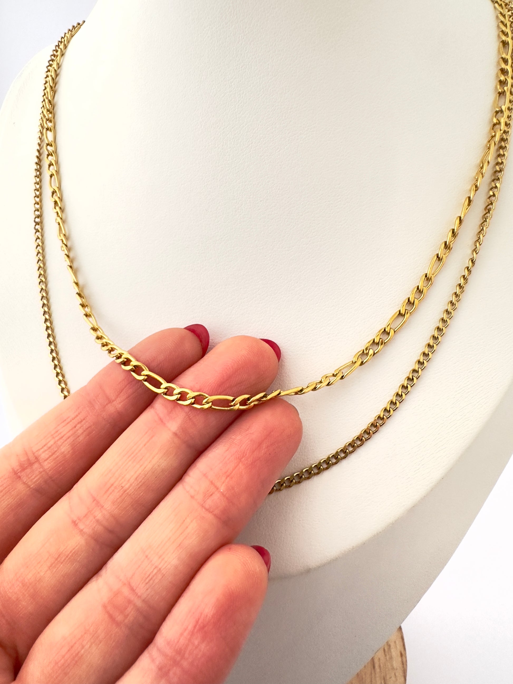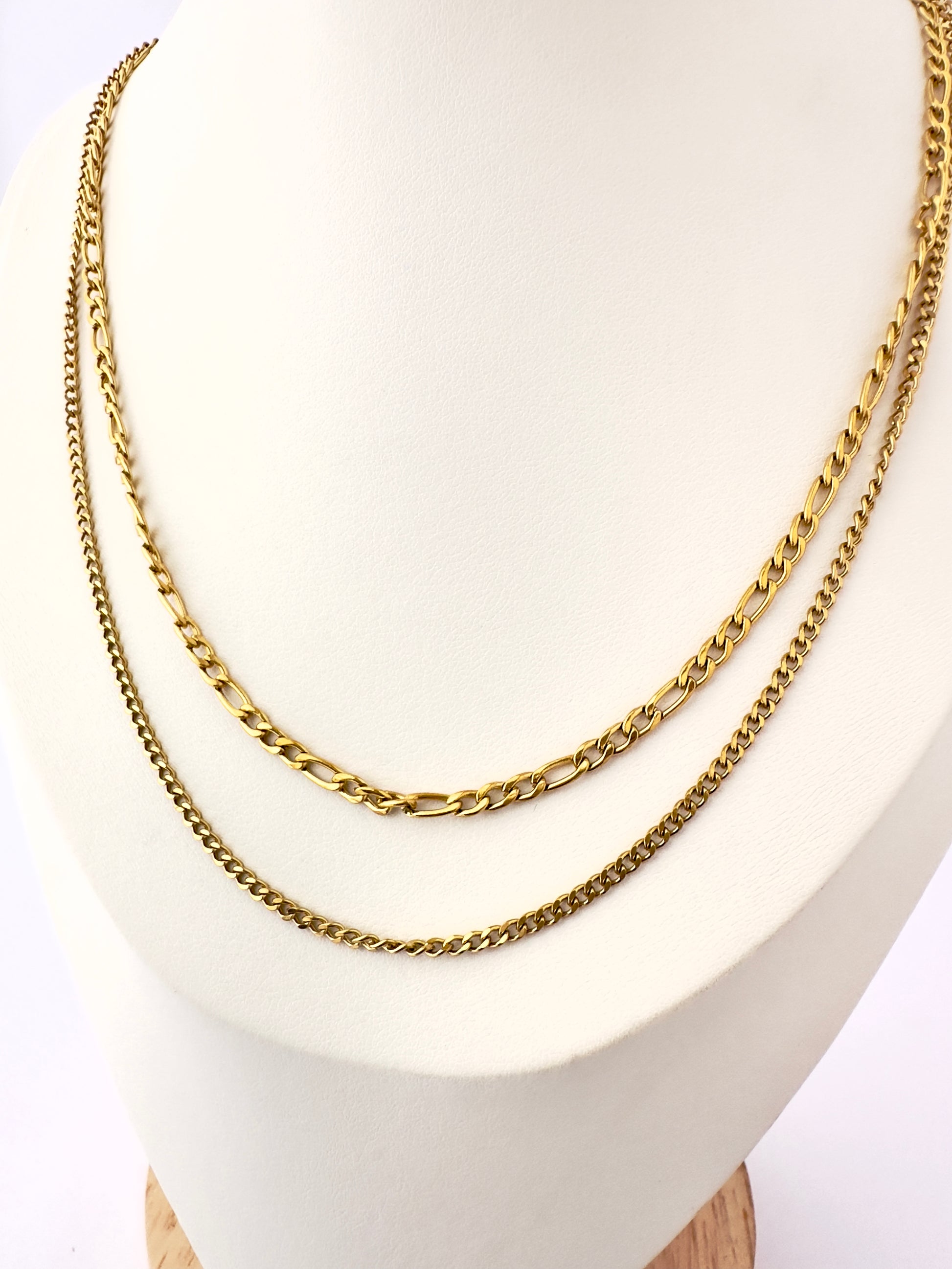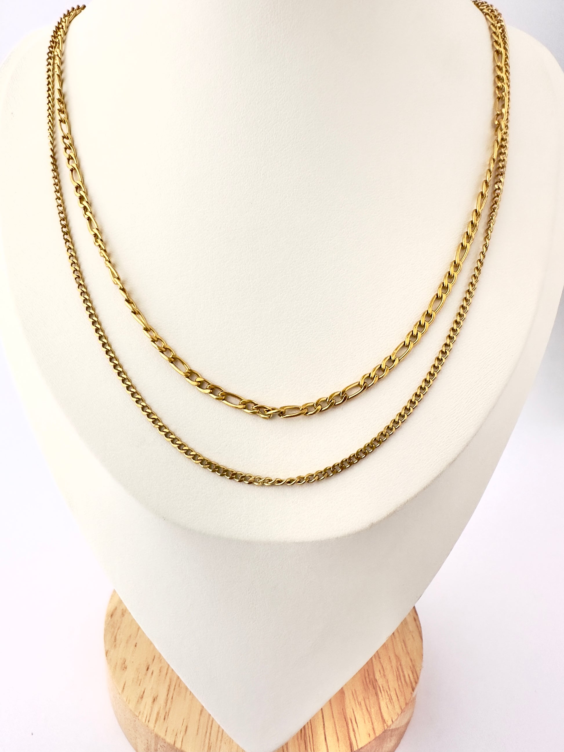 Diseño moderno y versátil con dos cadenas de eslabones distintos que se equilibran en textura y estilo. Perfecto para quienes buscan un accesorio llamativo, pero funcional y atemporal. Una pieza que combina lo clásico con un toque urbano, ideal para looks minimalistas o en layering.