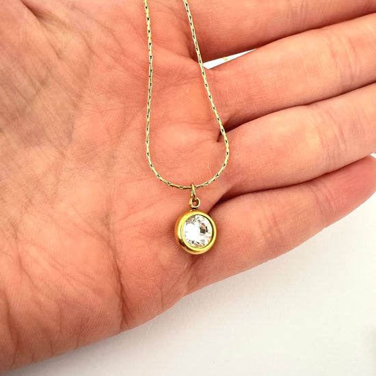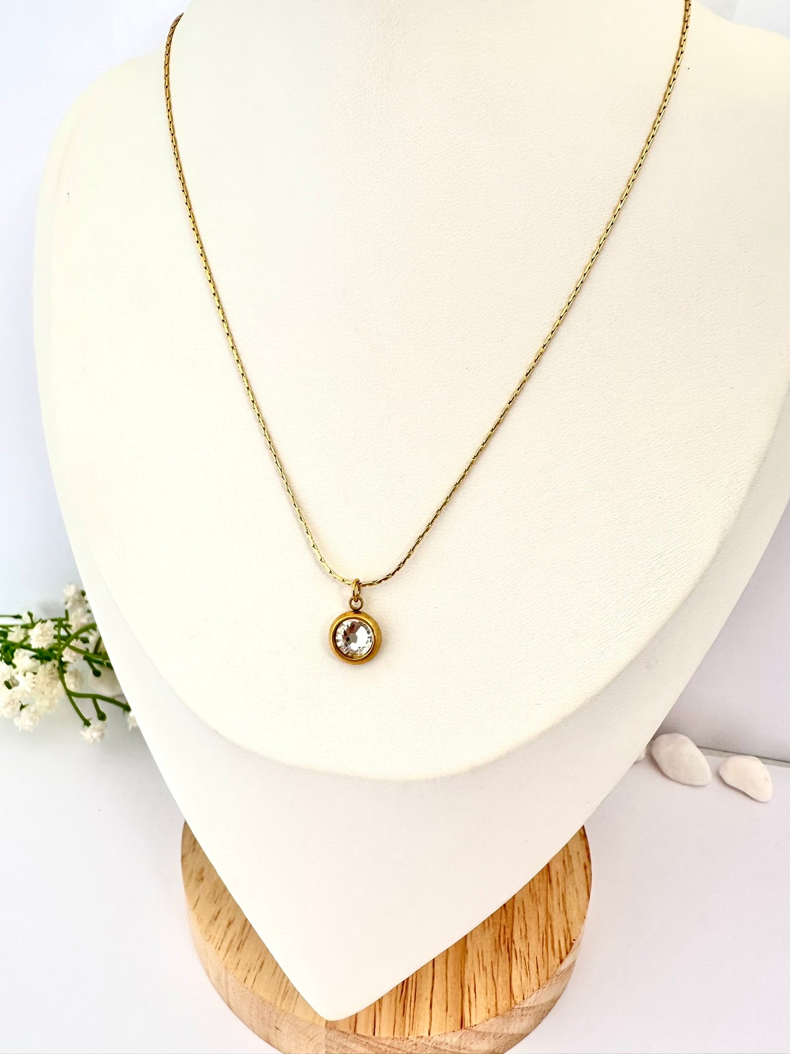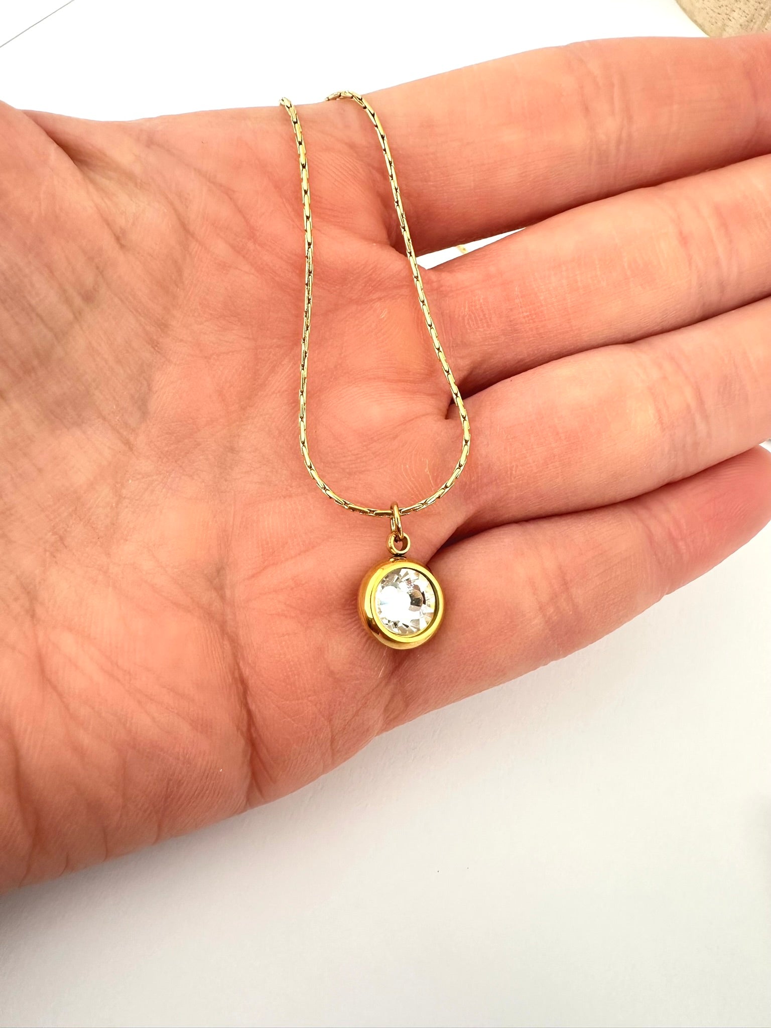 El Collar Punto de Luz Oro es un clásico infaltable: elegante, minimalista y perfecto para el uso diario. Su delicado dije central con cristal brillante refleja la luz con cada movimiento, aportando sutileza y sofisticación a cualquier look. Ideal para combinar con otros collares o lucir solo como pieza protagonista.