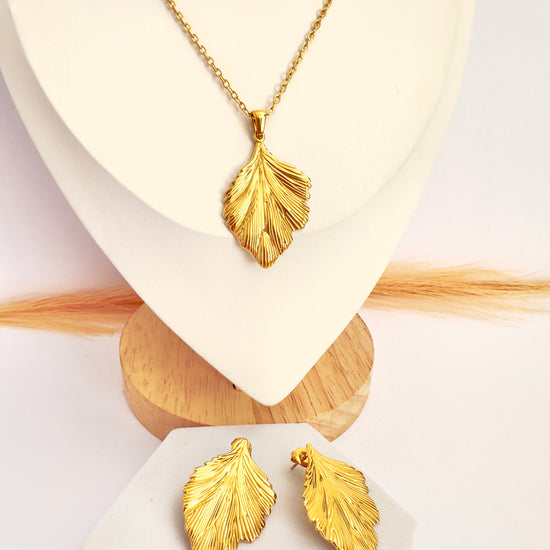 Rinde homenaje a la belleza orgánica de la naturaleza con este set que captura la esencia de una hoja en todo su esplendor. Es una pieza con carácter, diseñada para quienes buscan accesorios que evoquen frescura y una conexión con lo natural sin perder la elegancia.