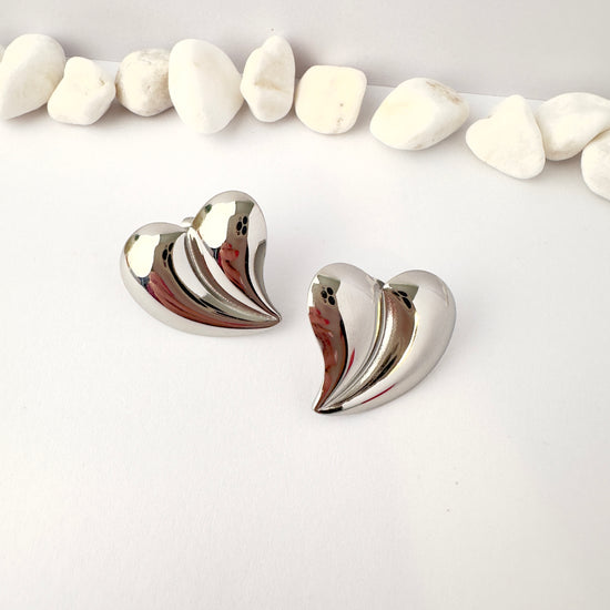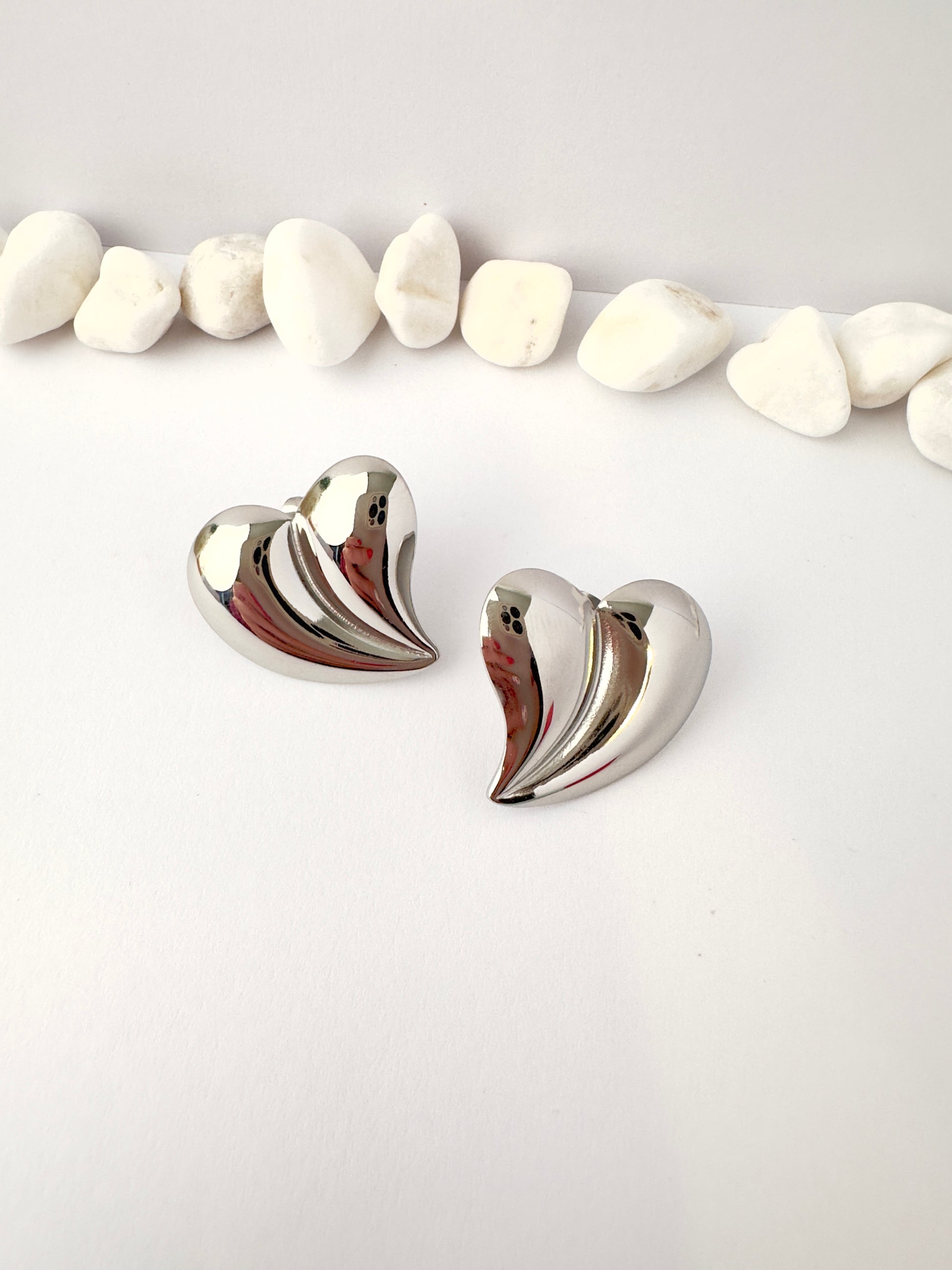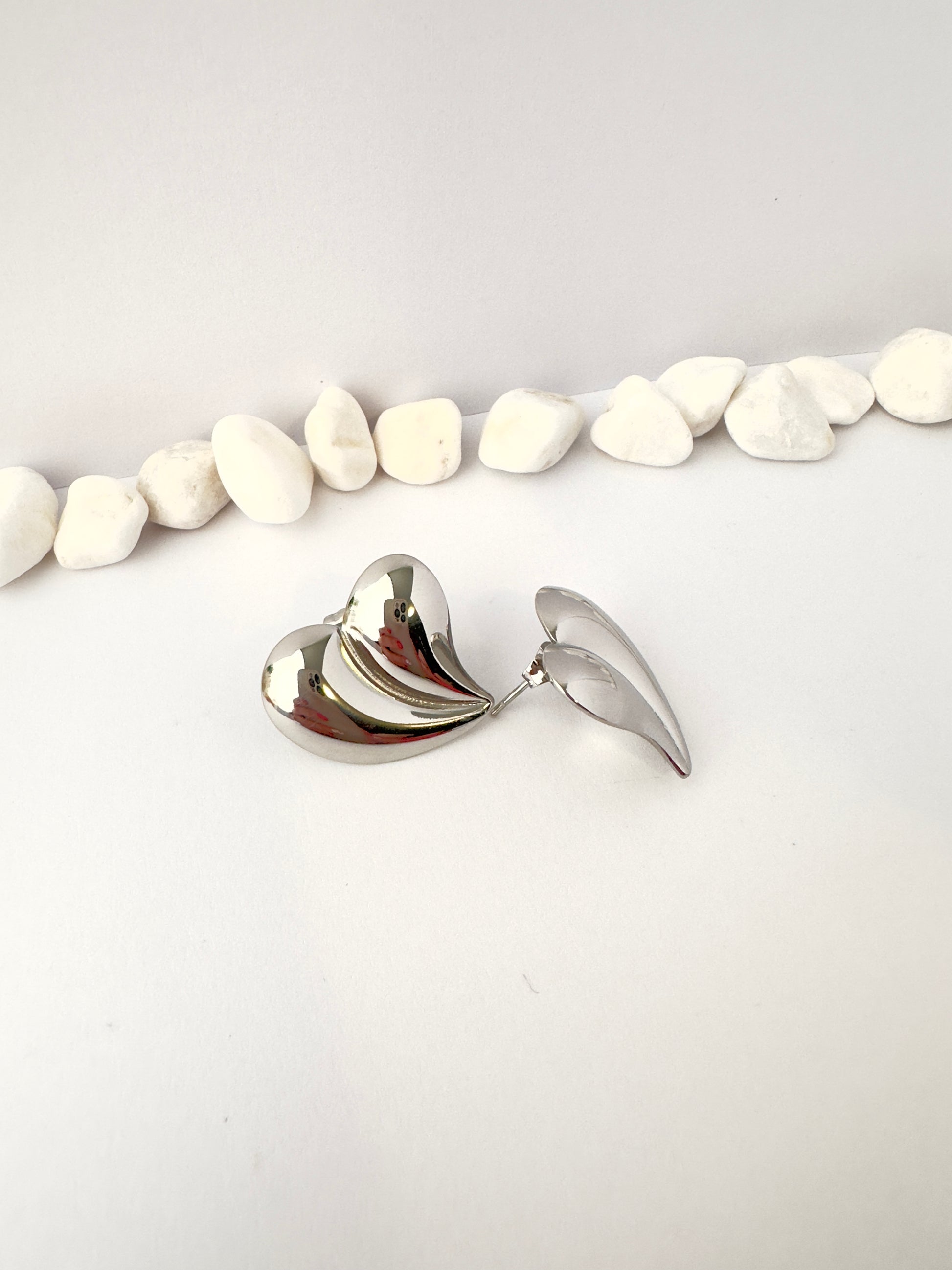 💖 Diseño curvo y minimalista que captura la luz con cada movimiento. Estos pendientes estilo corazón plateado son ideales para quienes aman un look moderno, pulido y con actitud.