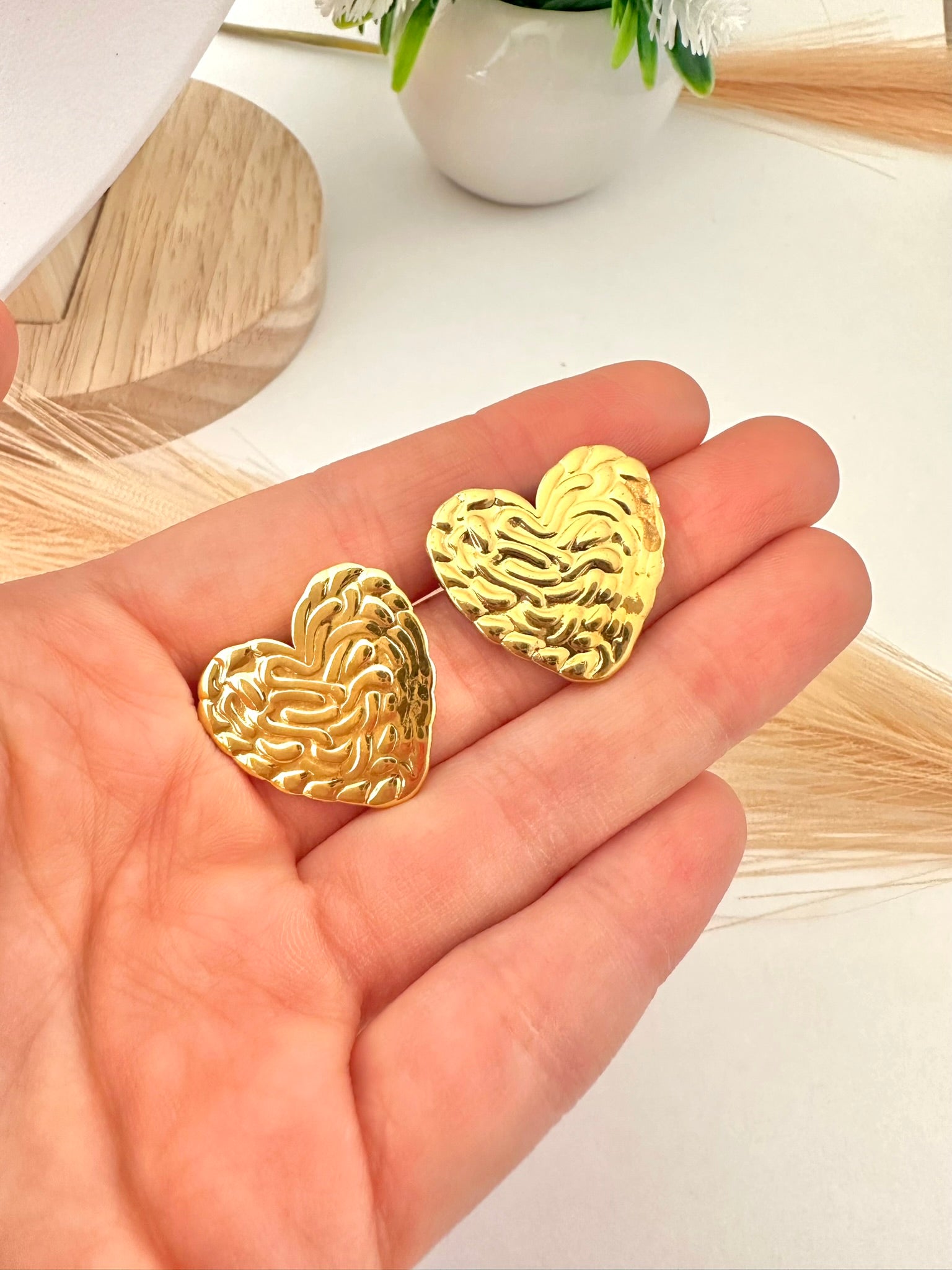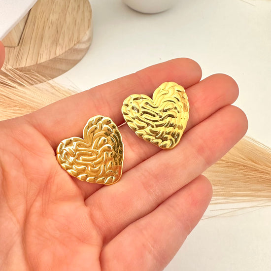 Pendientes de corazón dorado