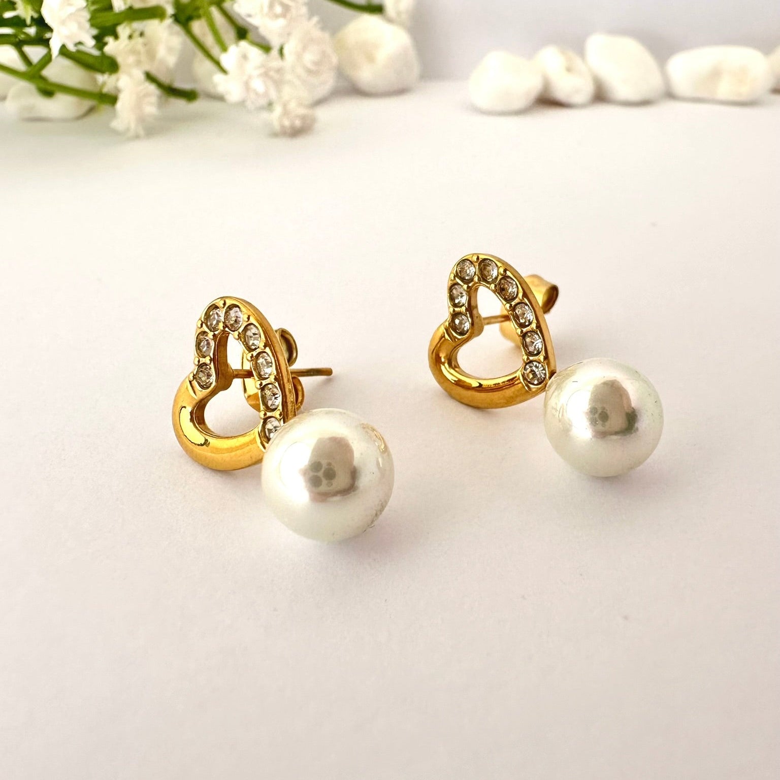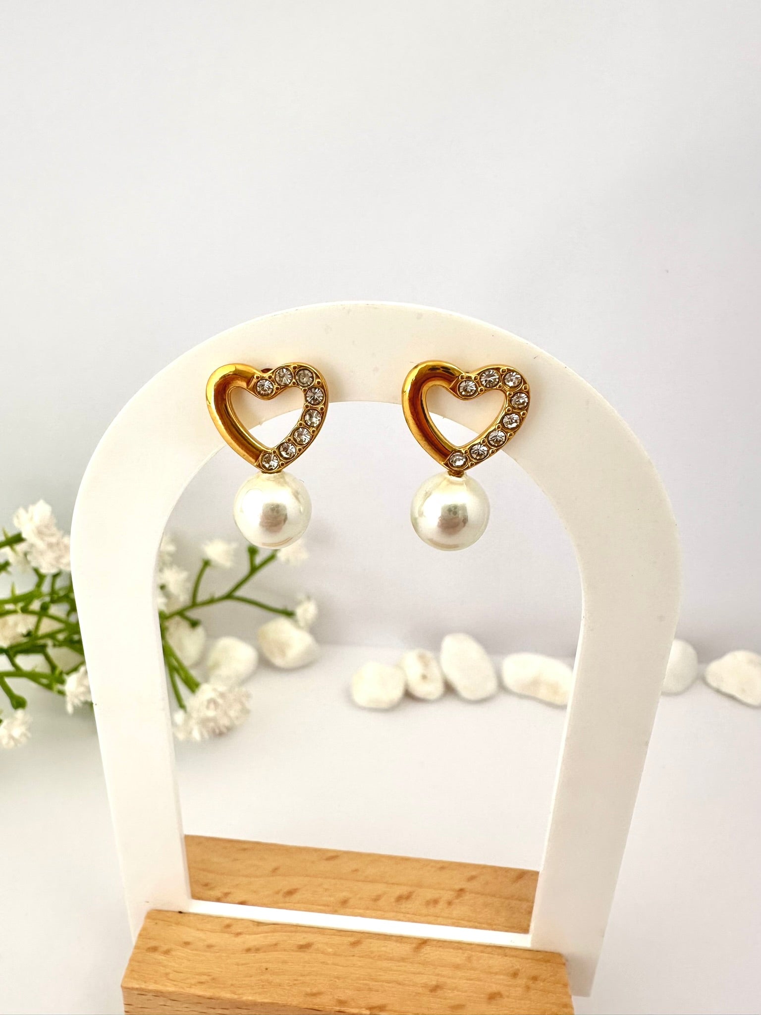 Los pendientes con perlas y corazones son piezas que se venden todo el año por su simbolismo y versatilidad. Ideales para destacar en campañas románticas o de regalos, ya que transmiten amor, elegancia y cuidado en los detalles. Su diseño llamativo los convierte en una excelente opción para fotografía de producto y vitrinas.
