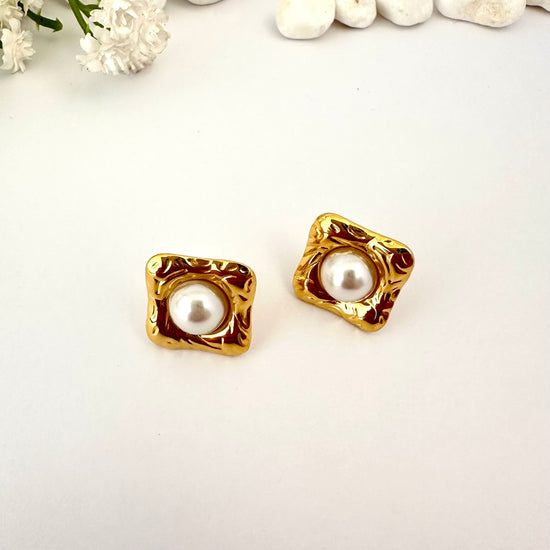 Estos pendientes combinan el brillo del oro con la elegancia atemporal de la perla. Su diseño cuadrado con bordes fluidos enmarca la perla central, creando un contraste perfecto entre modernidad y estilo clásico. Una joya que realza la feminidad y aporta distinción a cualquier look.