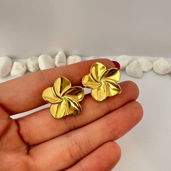 🌺 Inspirados en la flor de plumeria, estos pendientes evocan frescura, elegancia y un toque tropical chic. Su diseño delicado y brillante los convierte en una joya versátil para el día y la noche.