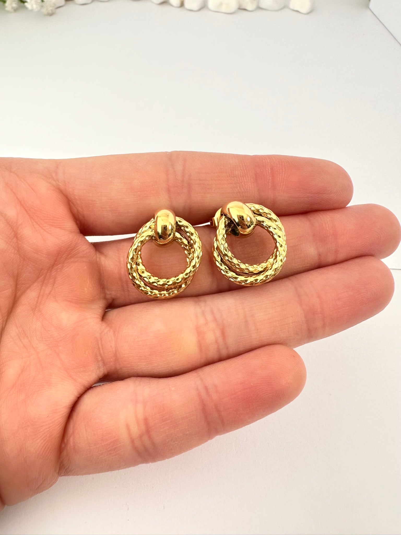 estos pendientes de aro con textura trenzada destacan por su diseño elegante y sofisticado. La combinación de su forma clásica con detalles entrelazados crea un efecto visual atractivo que realza cualquier look, desde lo casual hasta lo formal. Un accesorio versátil y atemporal que nunca pasa de moda.
