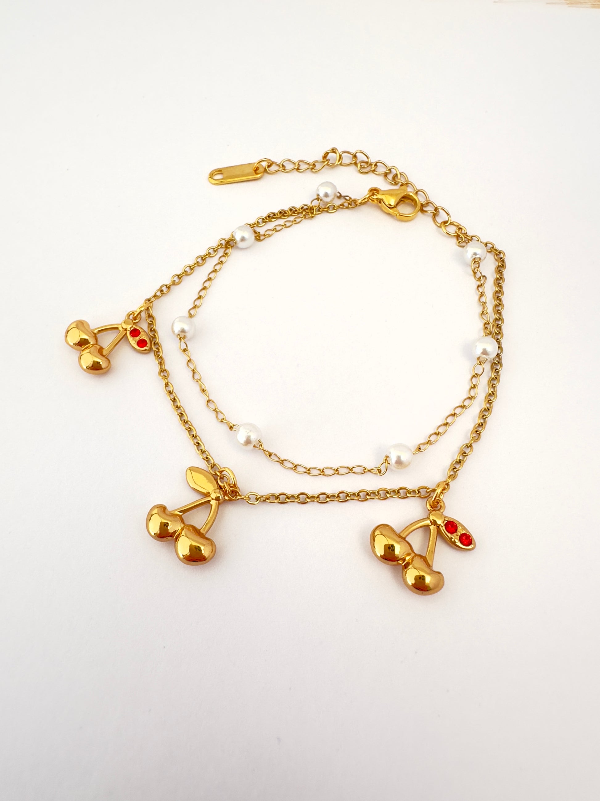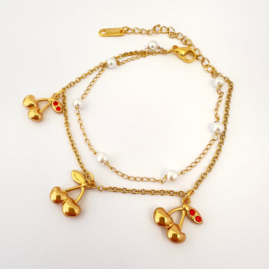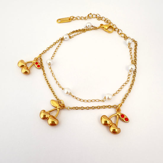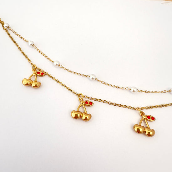 La dulzura de las cerezas doradas se combina con la elegancia de las perlas. Un diseño ligero, femenino y perfecto para cualquier ocasión.