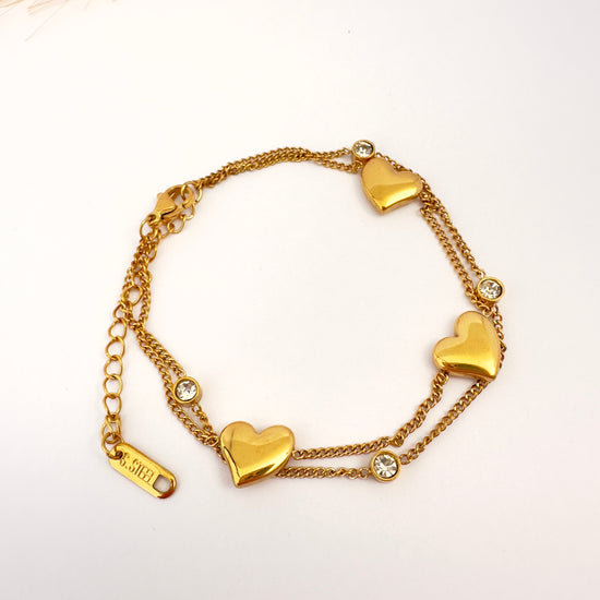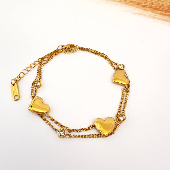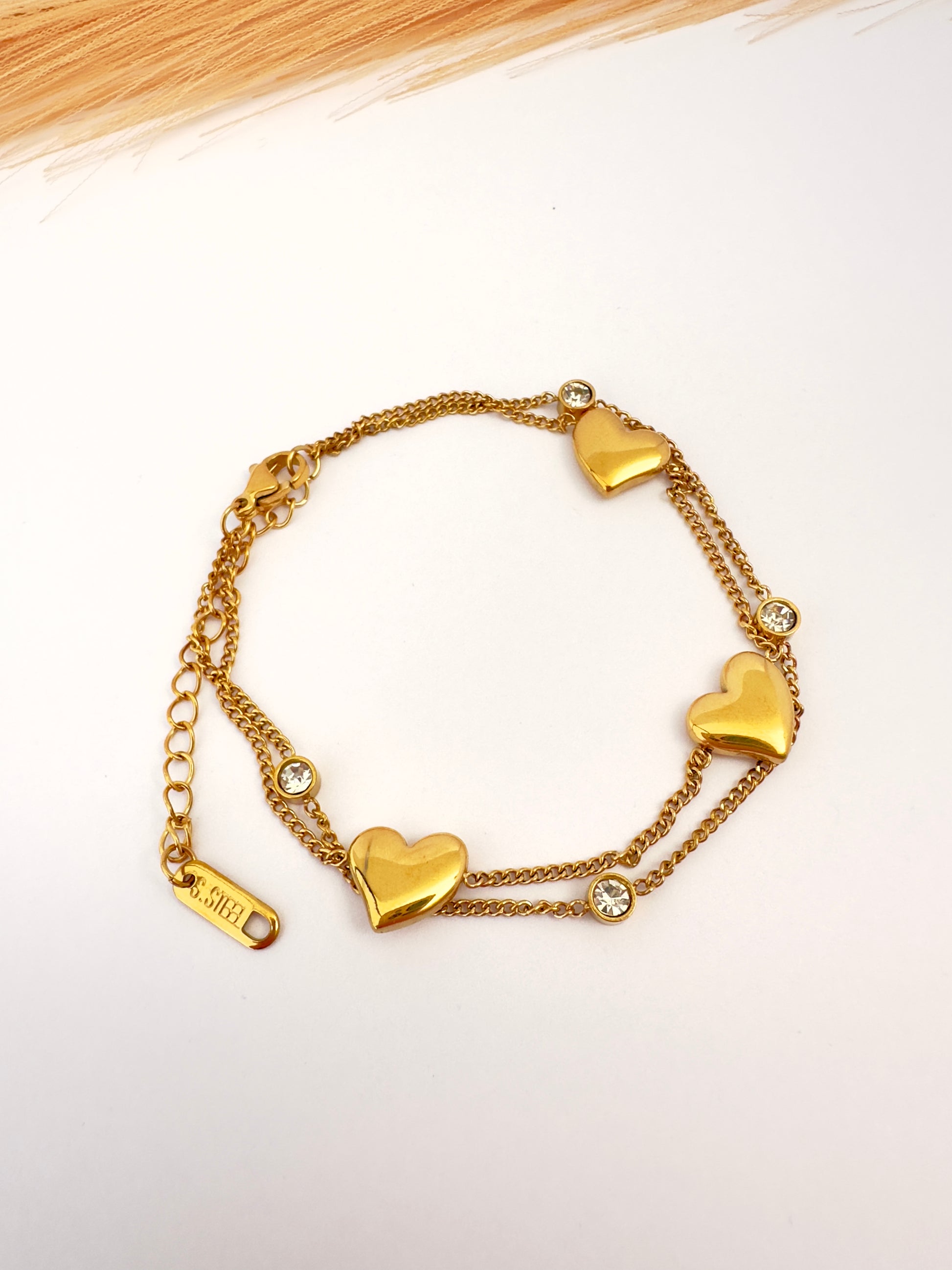 Un diseño que ilumina con suavidad. Sus corazones dorados y cristales reflejan amor y brillo en cada movimiento.