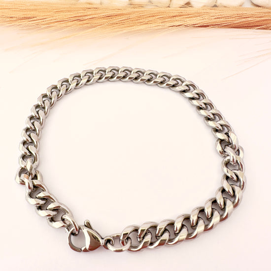 Pulsera masculina de diseño robusto y elegante, con tejido tipo eslabón cubano en acero inoxidable pulido. Su acabado brillante y ancho de 7 mm la convierten en una pieza destacada, ideal para complementar cualquier look urbano o casual.