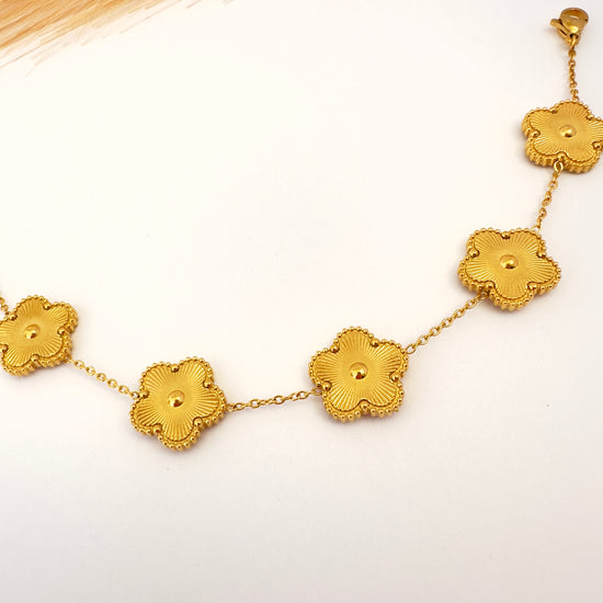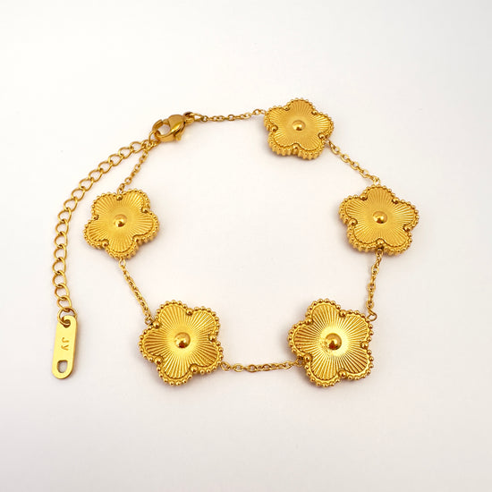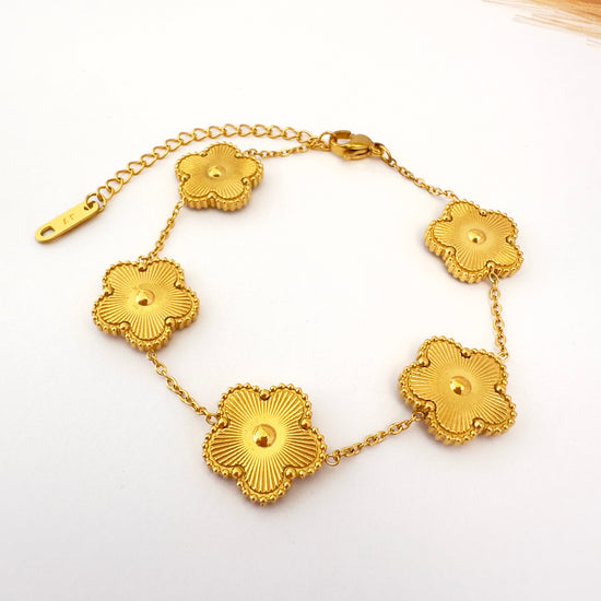Inspirada en la armonía de la naturaleza, esta pulsera con flores doradas realza tu estilo con un toque delicado y brillante.